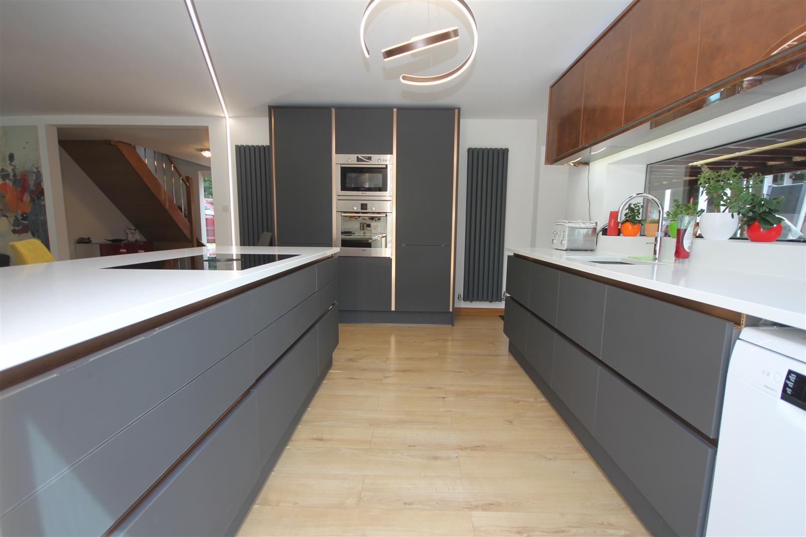 Integrated appliances include Bora induction hob with personal extractor fan, double oven, fridge/freezer & space for dishwasher
