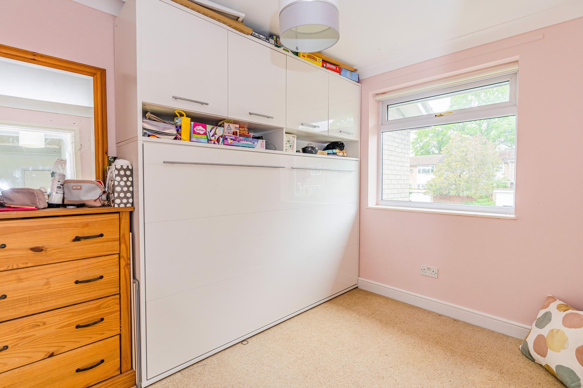 Outside, there is off street parking to the front of the garage with a paved pathway leading to the front door. To the rear, the garden enjoys a south aspect and has an area of decking, the remaining being laid to lawn and bordered by various shrubs and bushes.
