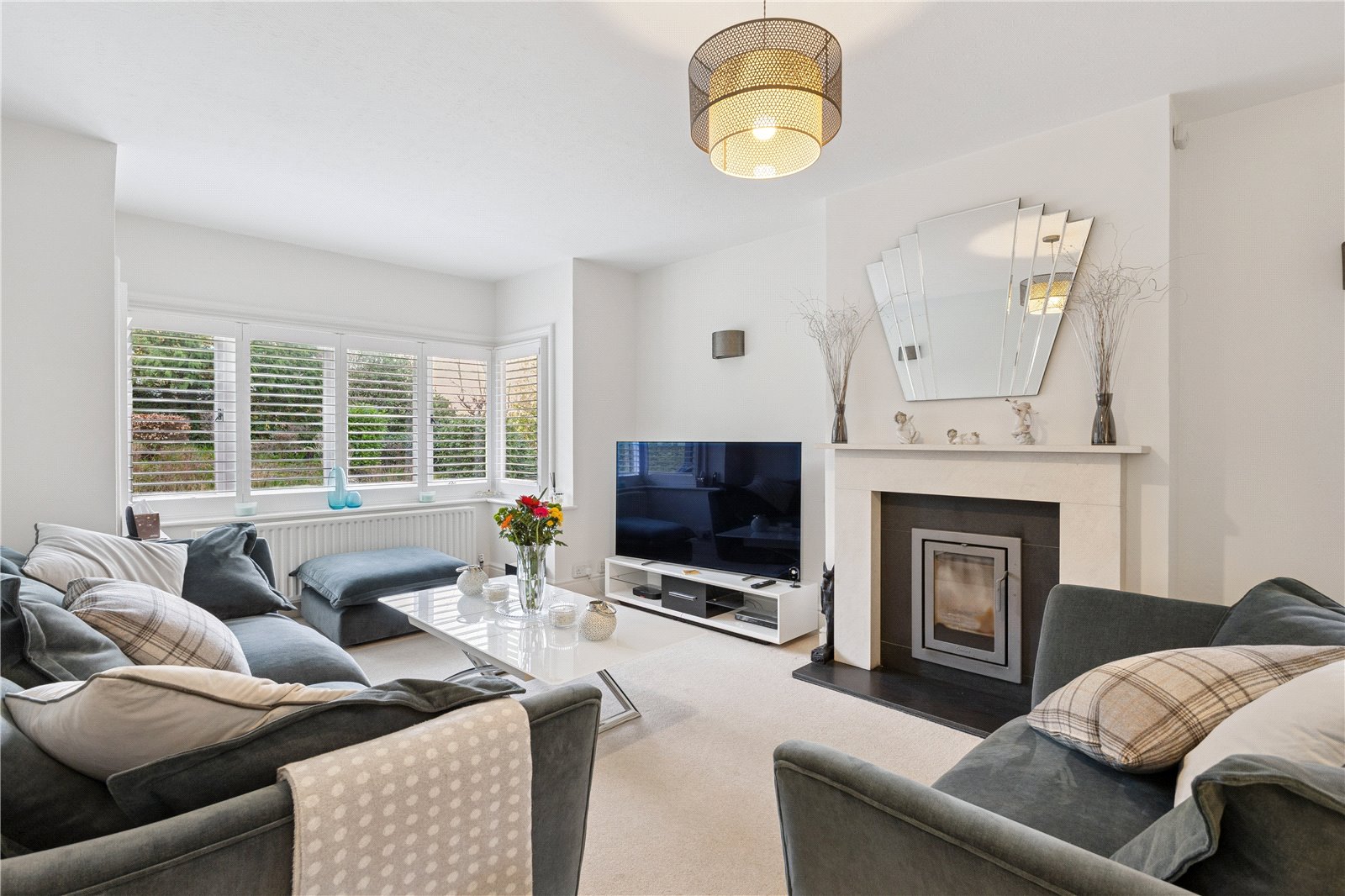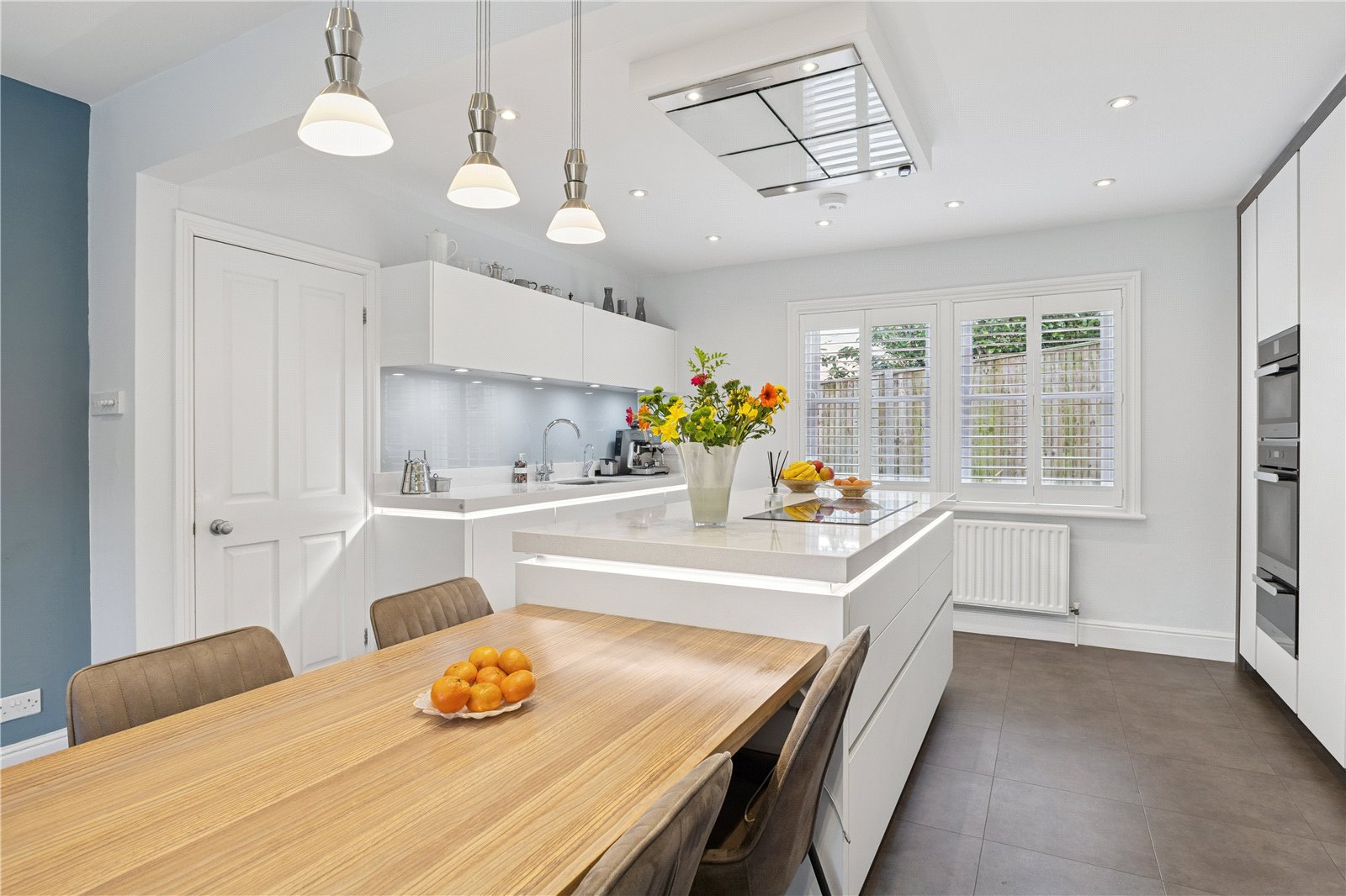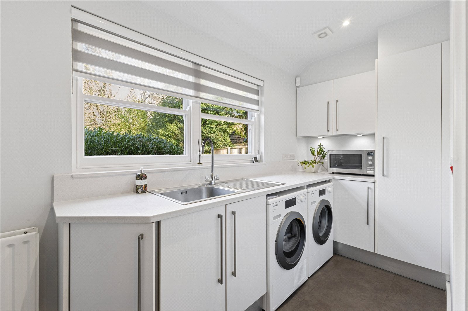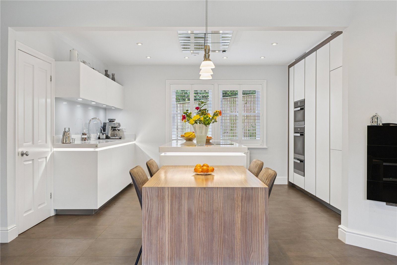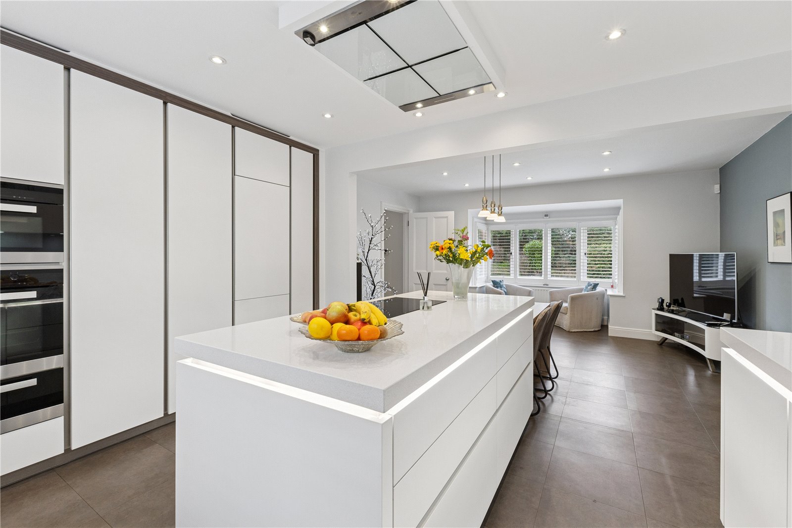 Kitchen/Breakfast/Family Area Double aspect, beautifully fitted with a wealth of fitted units, Quartz worktops and Miele appliances including a conventional/steam oven, further oven and warming drawer, integrated fridge/freezer, pull out larder cupboards, large central island, induction hob and extractor hood. Sink unit and Quooker tap, integrated dishwasher, bin store and attractive electric fire.