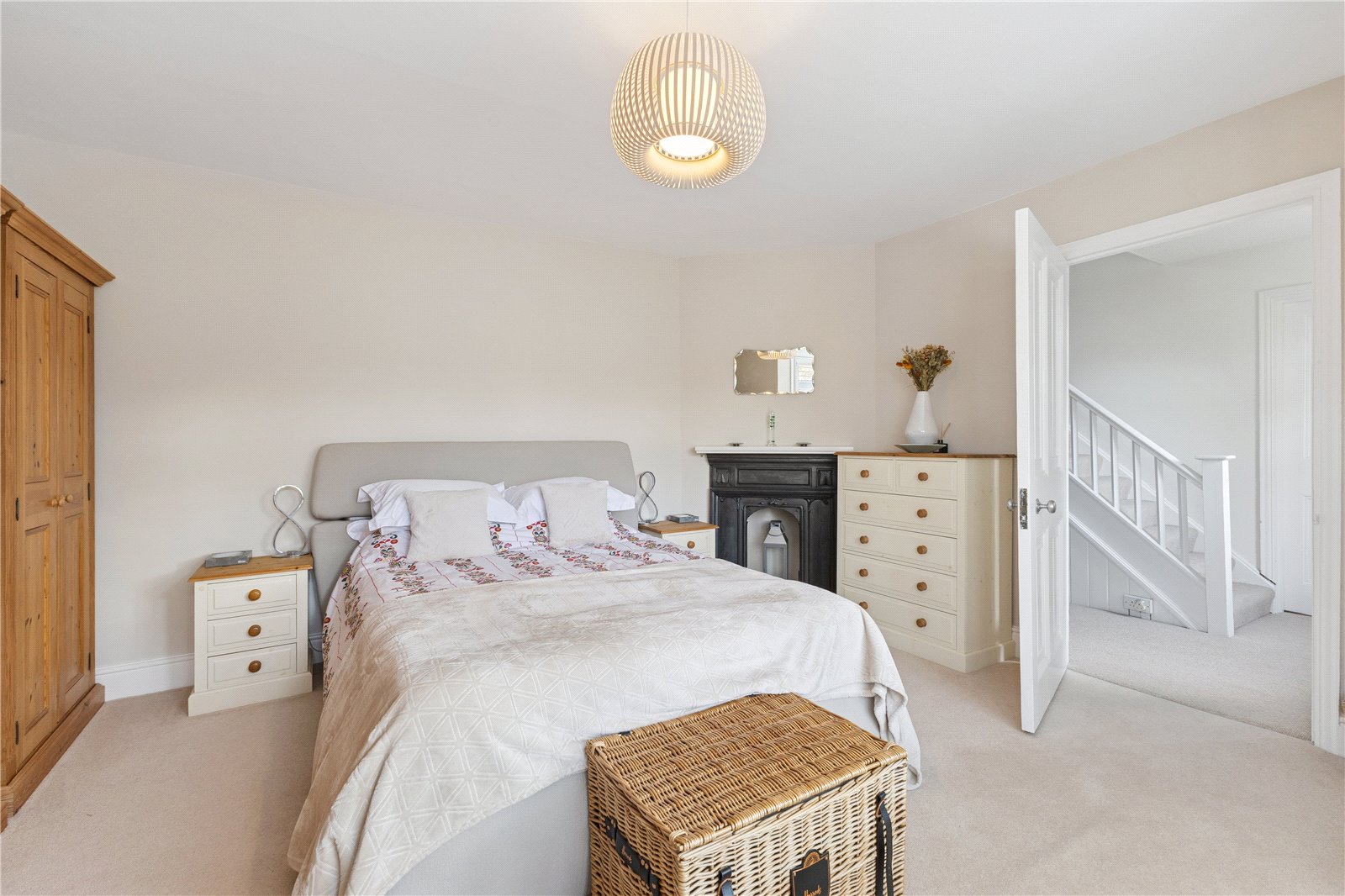 Staircase to Second Floor Landing with eaves storage.