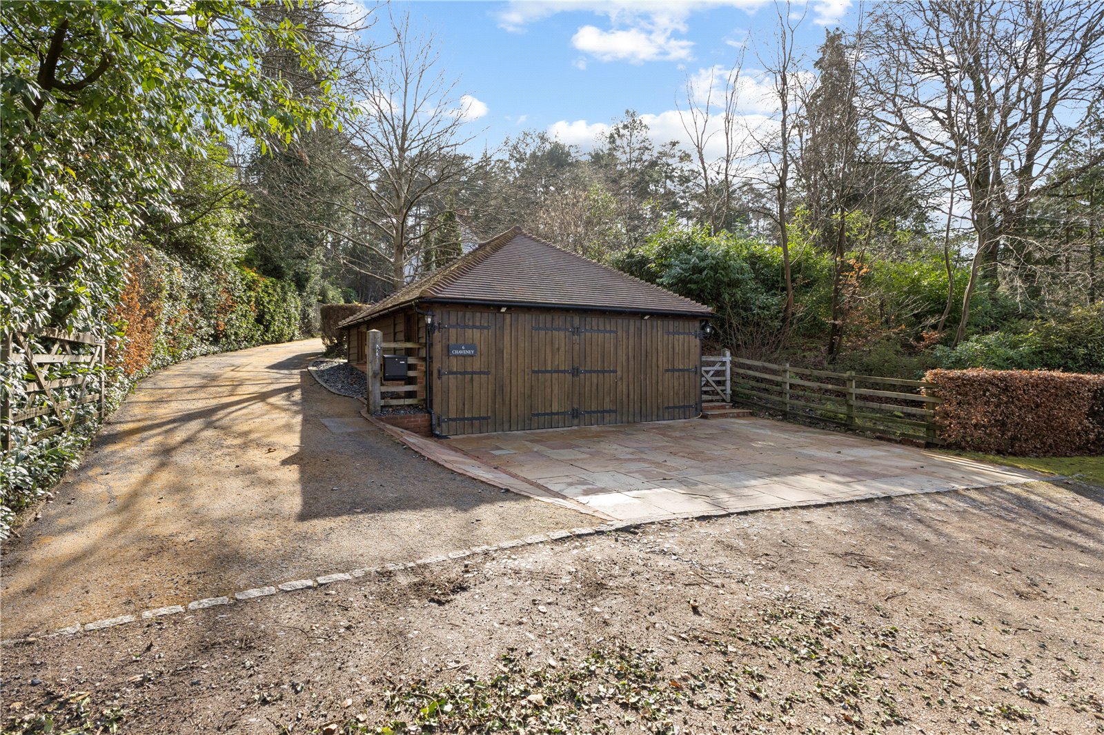 Outside - Front Five bar timber gate to sweeping driveway, providing parking and turning for numerous vehicles.