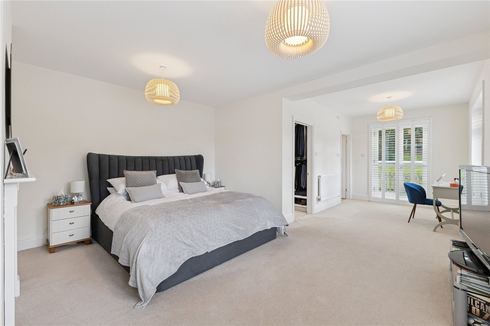 Master Bedroom Double aspect, large walk-in wardrobe/dressing room. Double doors to Juliet balcony.