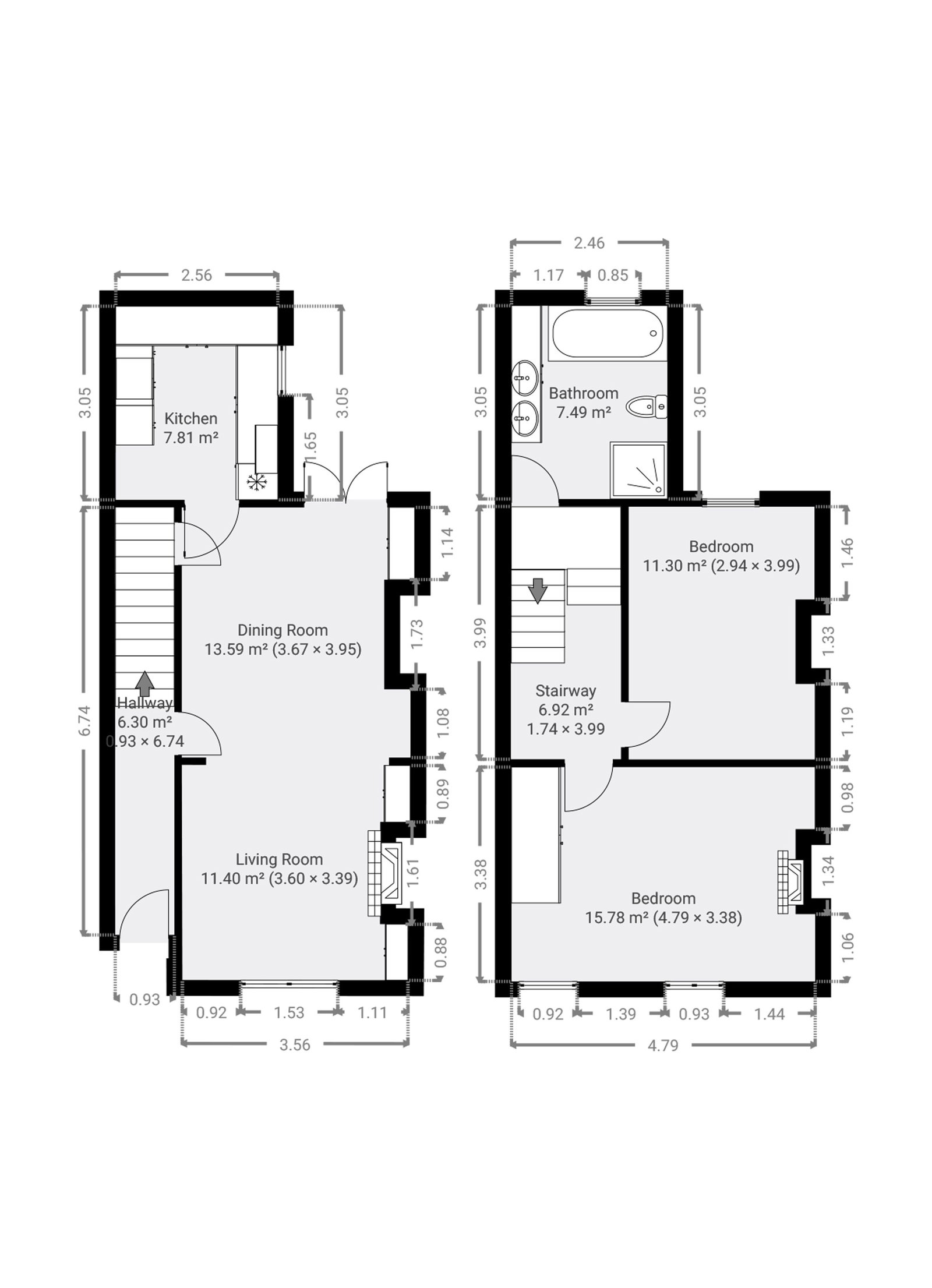 Upstairs, the property features two spacious bedrooms, offering peaceful retreats. The contemporary bathroom is finished to a high standard, providing a fresh and clean space.