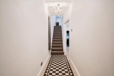 Upon entering the spacious hallway with traditional black and white tiling you are lead into an inviting lounge area, which flows seamlessly into a dedicated dining space, creating an ideal layout for both relaxation and entertaining. The modern kitchen, with brand new hob and boiler is well-appointed, providing a functional and stylish environment for daily living.