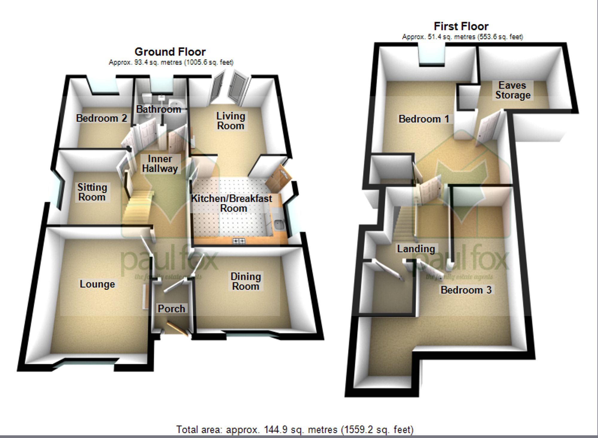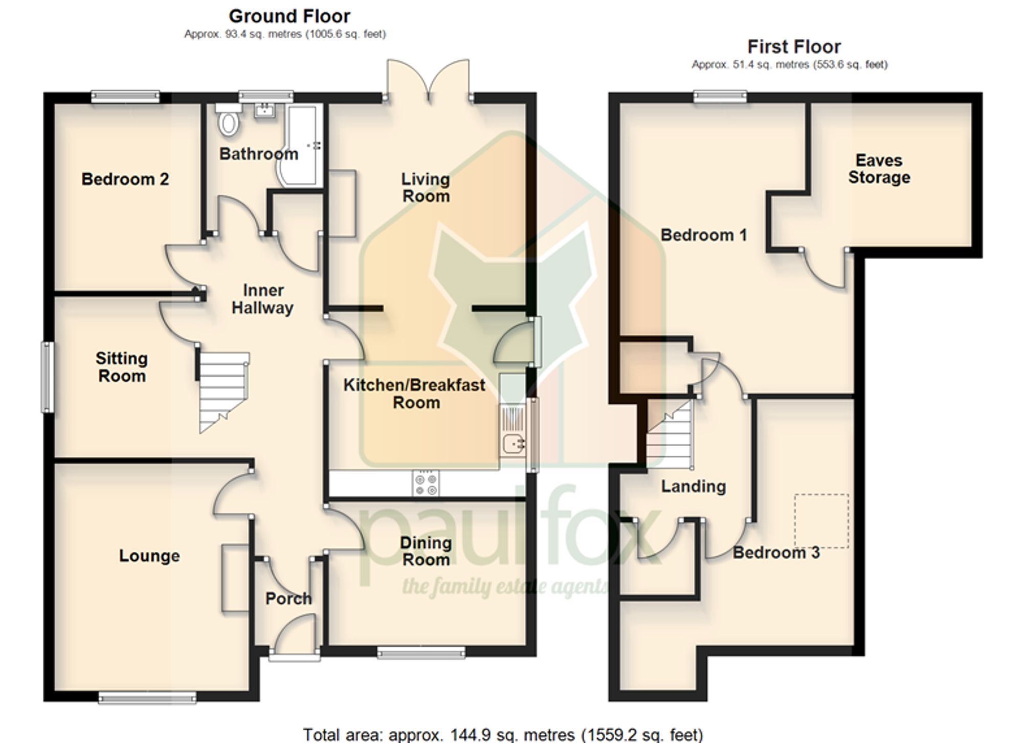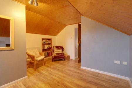 To the first floor, a central landing with built-in storage gives access to two versatile bedrooms, both benefitting from useful eaves storage.