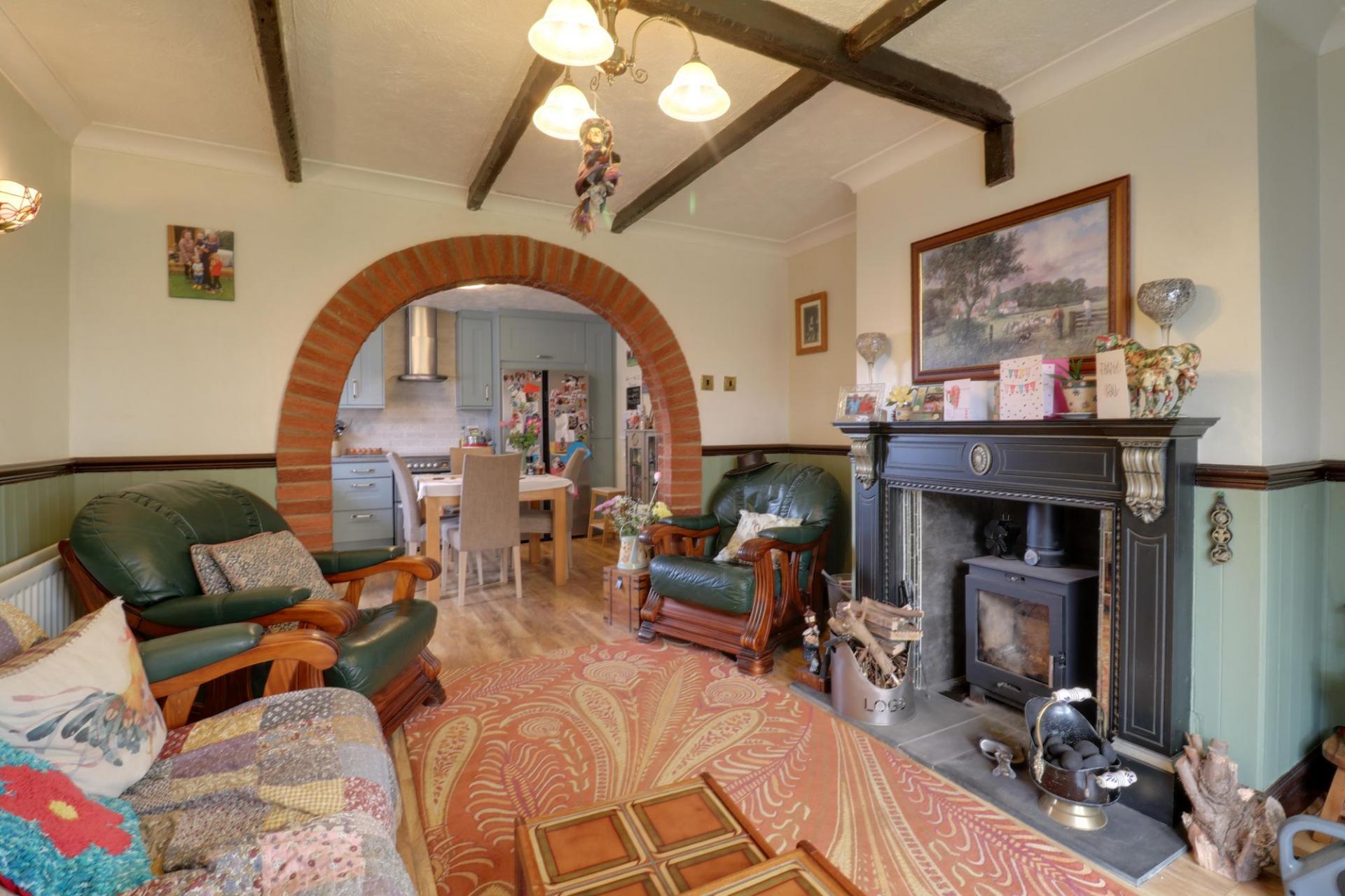 The well-presented accommodation briefly comprises; entrance porch leading into a welcoming inner hallway, two front-facing reception rooms including a formal dining room and a cosy lounge with feature fireplace, together with a further side-facing sitting room/study. The ground floor also offers a double bedroom served by a bathroom suite, and an attractive breakfast kitchen opening through to a superb rear living room featuring a multi-fuel burning stove and French doors leading out to the rear garden.