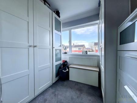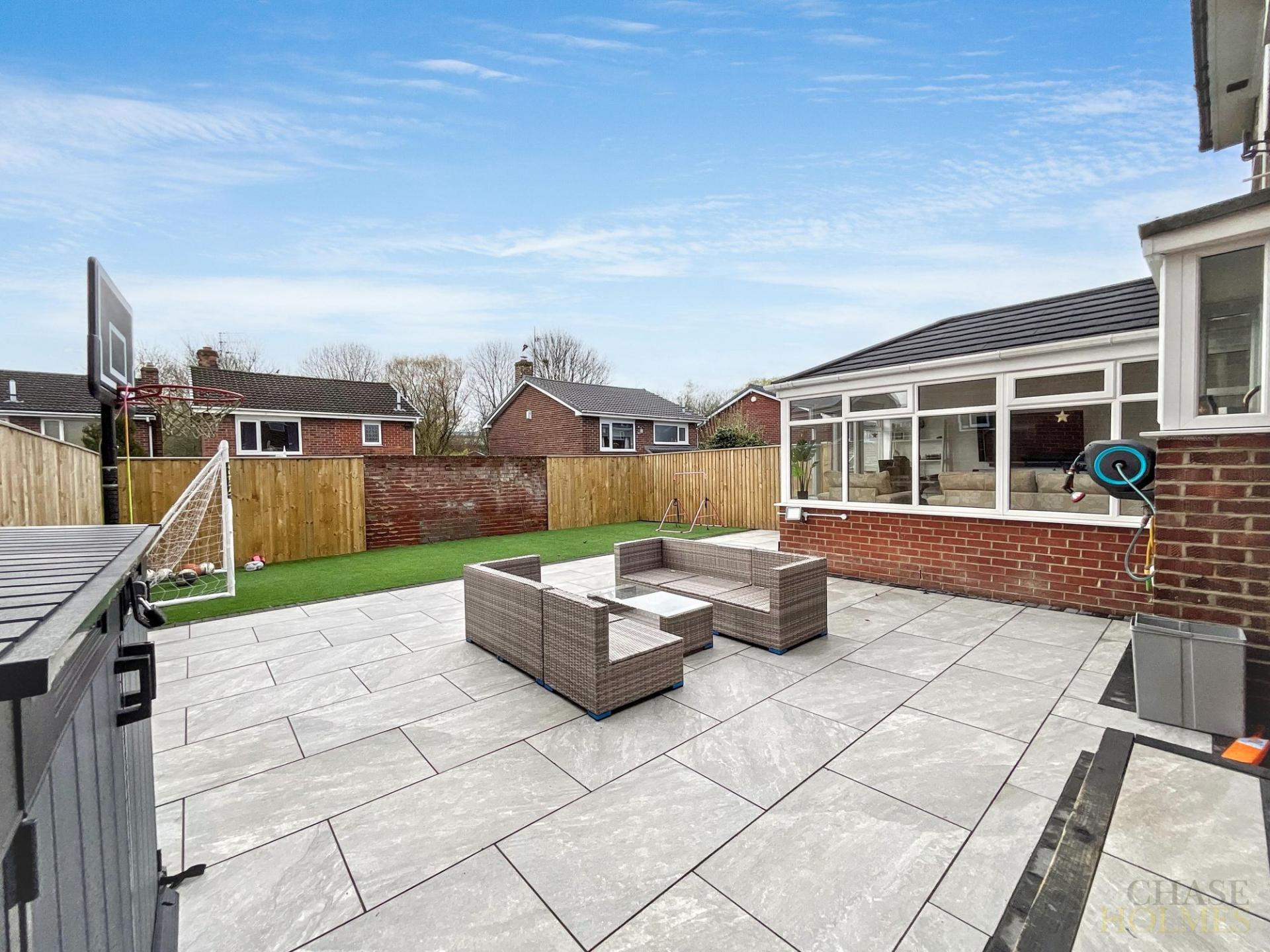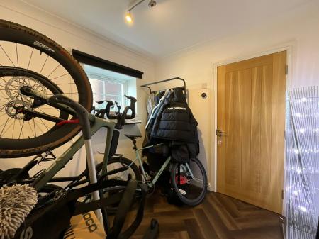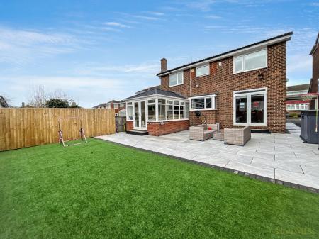 Externally, the property boasts a spacious patio area and a low-maintenance artificial lawn, providing an ideal setting for outdoor entertaining and family activities without the upkeep of natural grass. The garage has been thoughtfully divided to create a generous utility room and an additional storage space, currently used for bike storage but equally suitable as a playroom or hobby room.