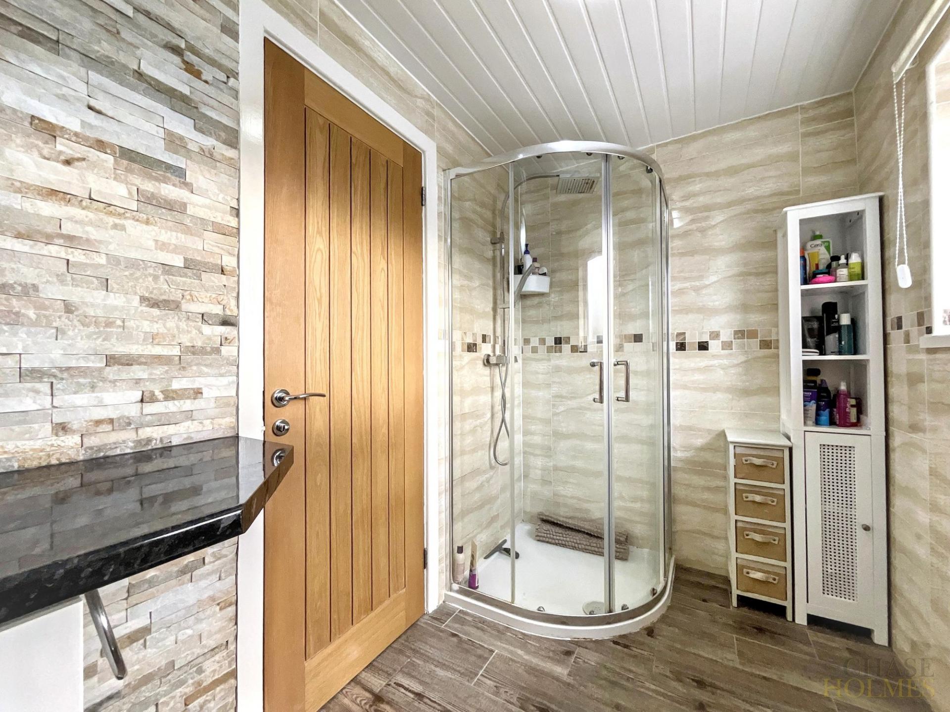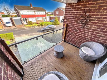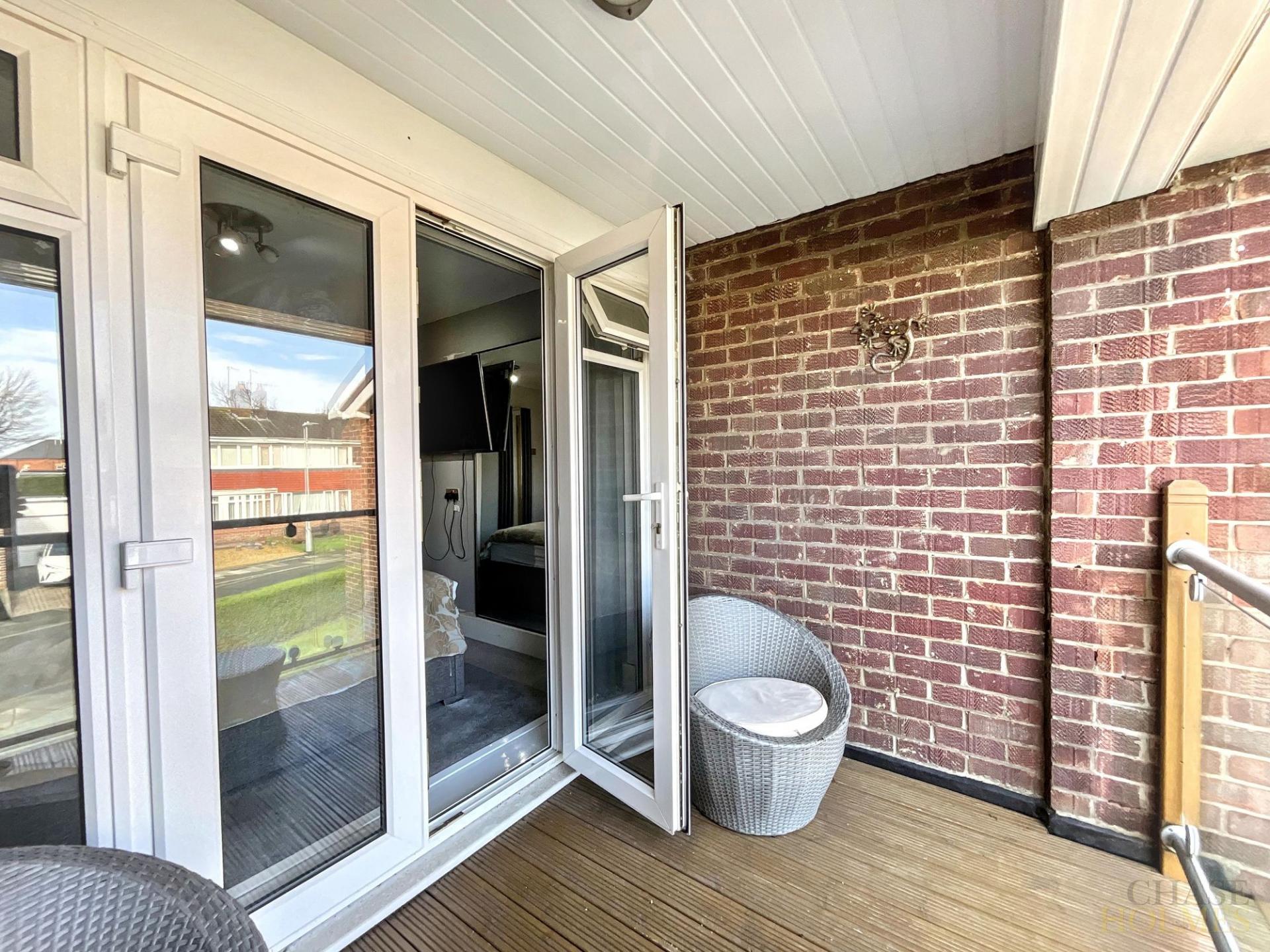 Upstairs, the property comprises four well-proportioned bedrooms, each designed with comfort in mind. The principal bedroom benefits from a private balcony, creating a peaceful retreat for morning coffee or evening relaxation, and also features an en-suite bathroom complete with a bath. The main family bathroom is finished to a high standard and includes a contemporary walk-in shower alongside quality fittings, combining style with practicality.