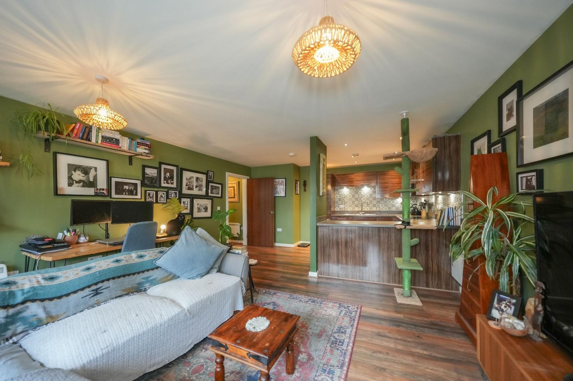 The accommodation begins with an inviting apartment hallway, providing access to all principal rooms. The impressive lounge/diner forms the heart of the home and features patio doors to a Juliet-style balcony, perfect for enjoying fresh air and views over the development. Open-plan access leads seamlessly into the stylish fitted kitchen, equipped with built-in cooking appliances along and integrated appliances, offering both practicality and a sleek, modern aesthetic.