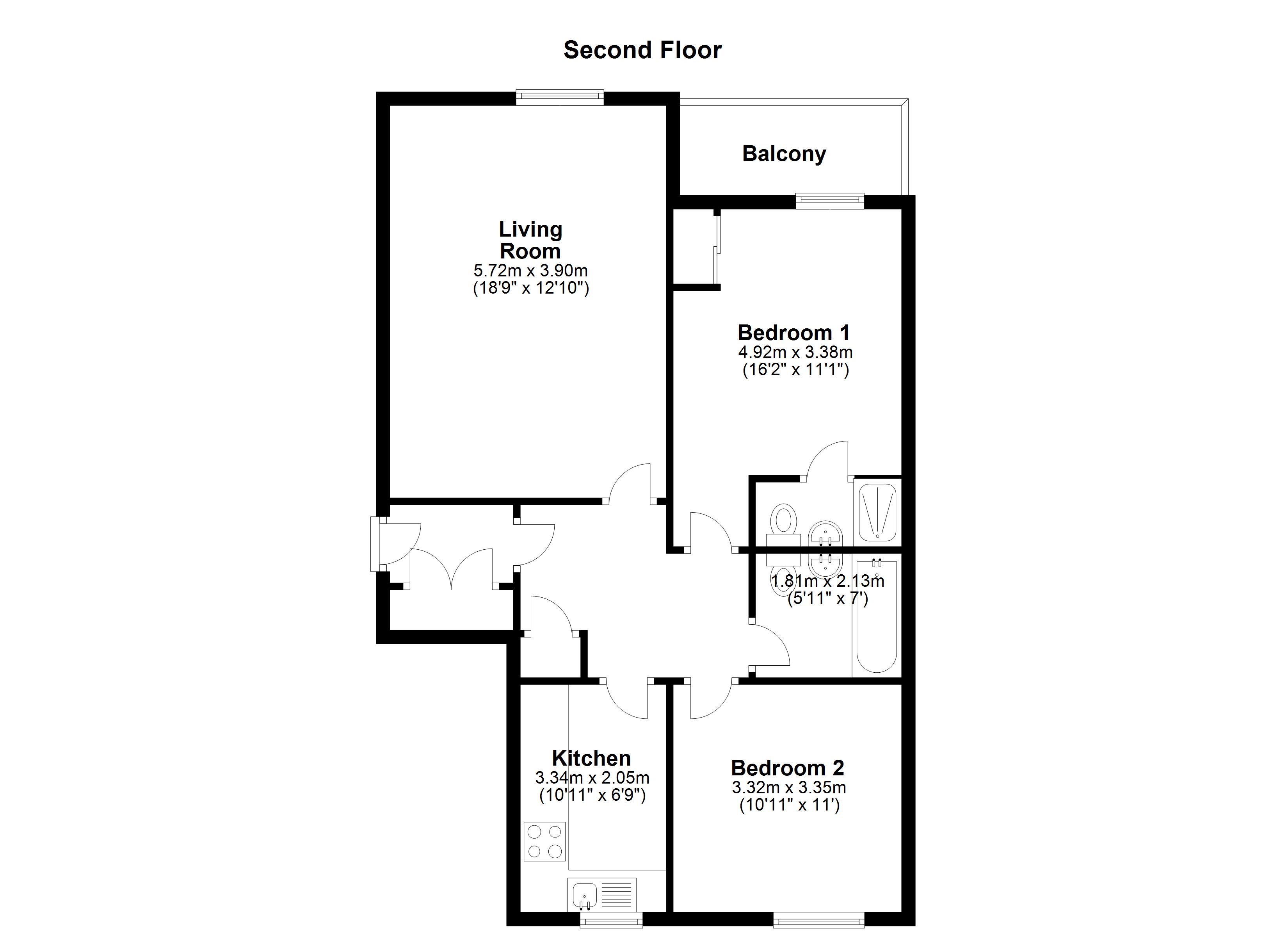 Bedroom One 4.93m > 3.89m x 3.36m max