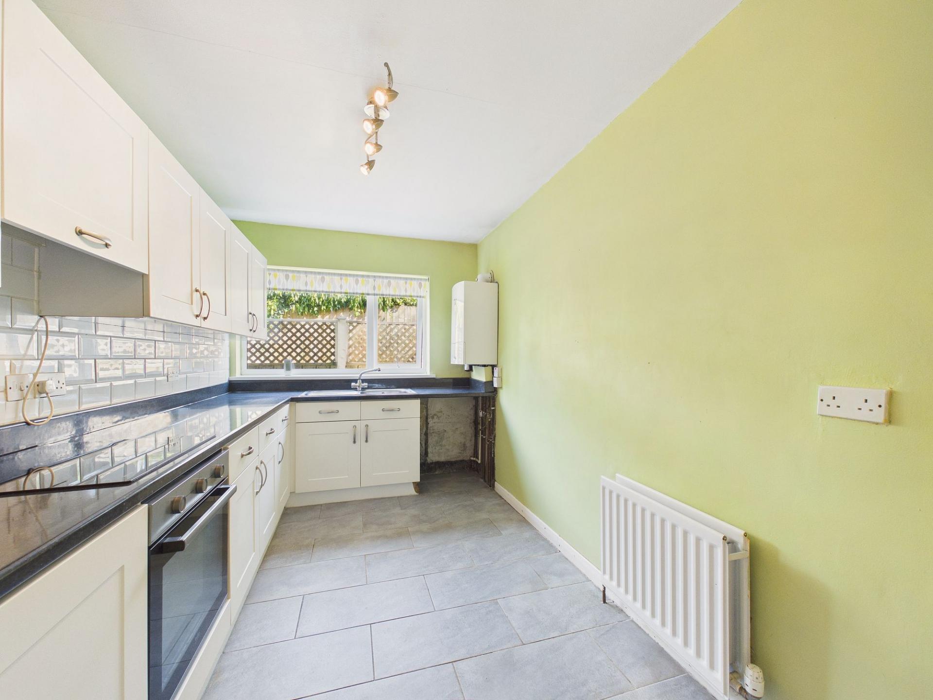 The kitchen is fitted with a range of modern units and built in cooking appliances, providing a practical yet stylish space for cooking and entertaining. Both bedrooms are generously proportioned double rooms; with one of the bedroom featuring fitted wardrobes, while the bedroom offers direct access to the rear garden, seamlessly connecting indoor and outdoor living.