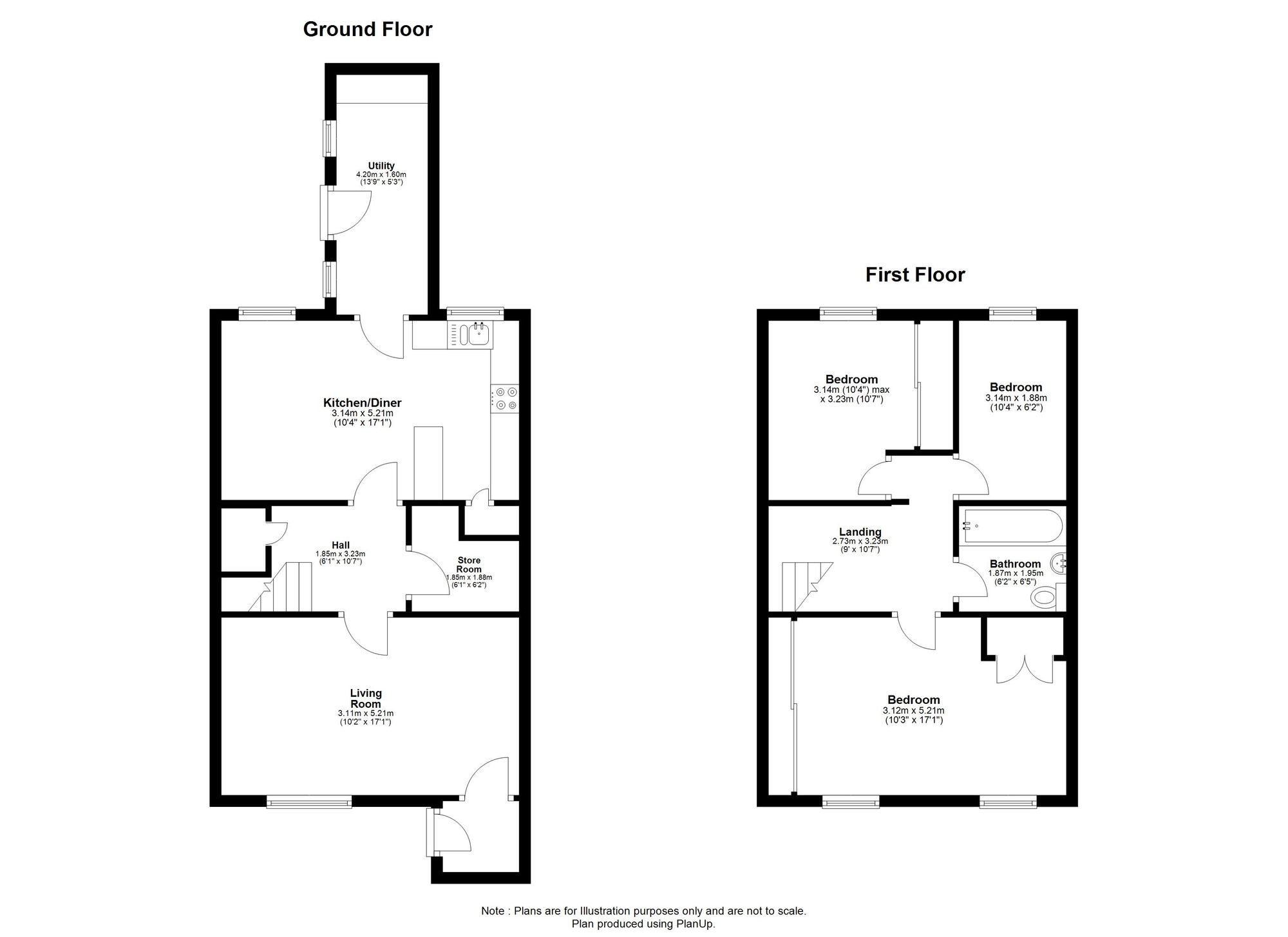 To the first floor, the property offers three bedrooms, making it an excellent choice for couples, young families or those needing a dedicated home office or guest room. The main bedroom benefits from fitted wardrobes, providing excellent storage solutions. A well appointed bathroom with a white suite features a shower facility over the bath.