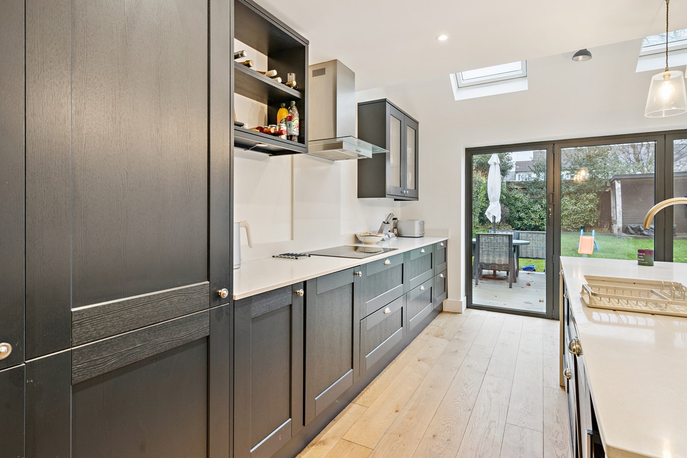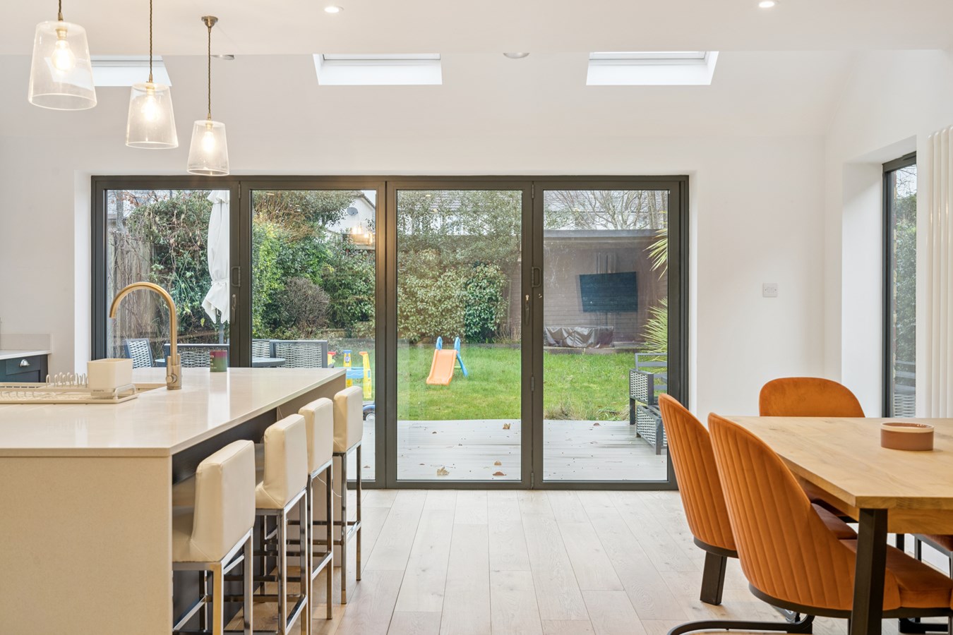This stunning three bedroom detached house has been extended and significantly refurbished to an incredibly high standard. The property has been carefully planned to provide bright, spacious accommodation with contemporary styling throughout. The main hub and arguably, the most impressive part of the property, is the beautiful fitted kitchen/dining room which features an island unit with breakfast bar, dual aspect windows including skylight windows and bifold doors leading to the rear garden. There is also a separate living room with front aspect window and situated off the kitchen/dining room there is a utility room which in turn leads through to a office/playroom which has a skylight window and could potentially be used as an occasional fourth bedroom. The cloakroom/wc completes the highly impressive ground floor accommodation.