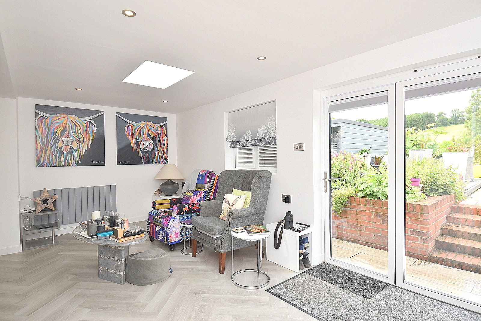 Adjacent to the kitchen is a spacious dining room, providing a seamless flow into the inviting sitting room. Bi-folding doors open directly into the rear garden, creating a connection between indoor and outdoor living.