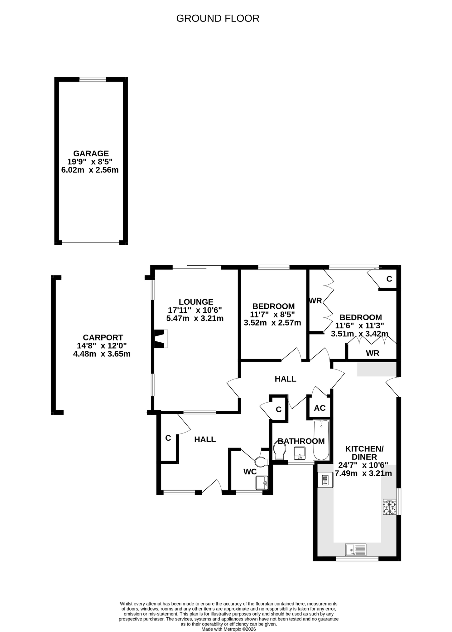 • Driveway parking for several vehicles leading to a carport and detached single garage, with secure side access to the rear garden