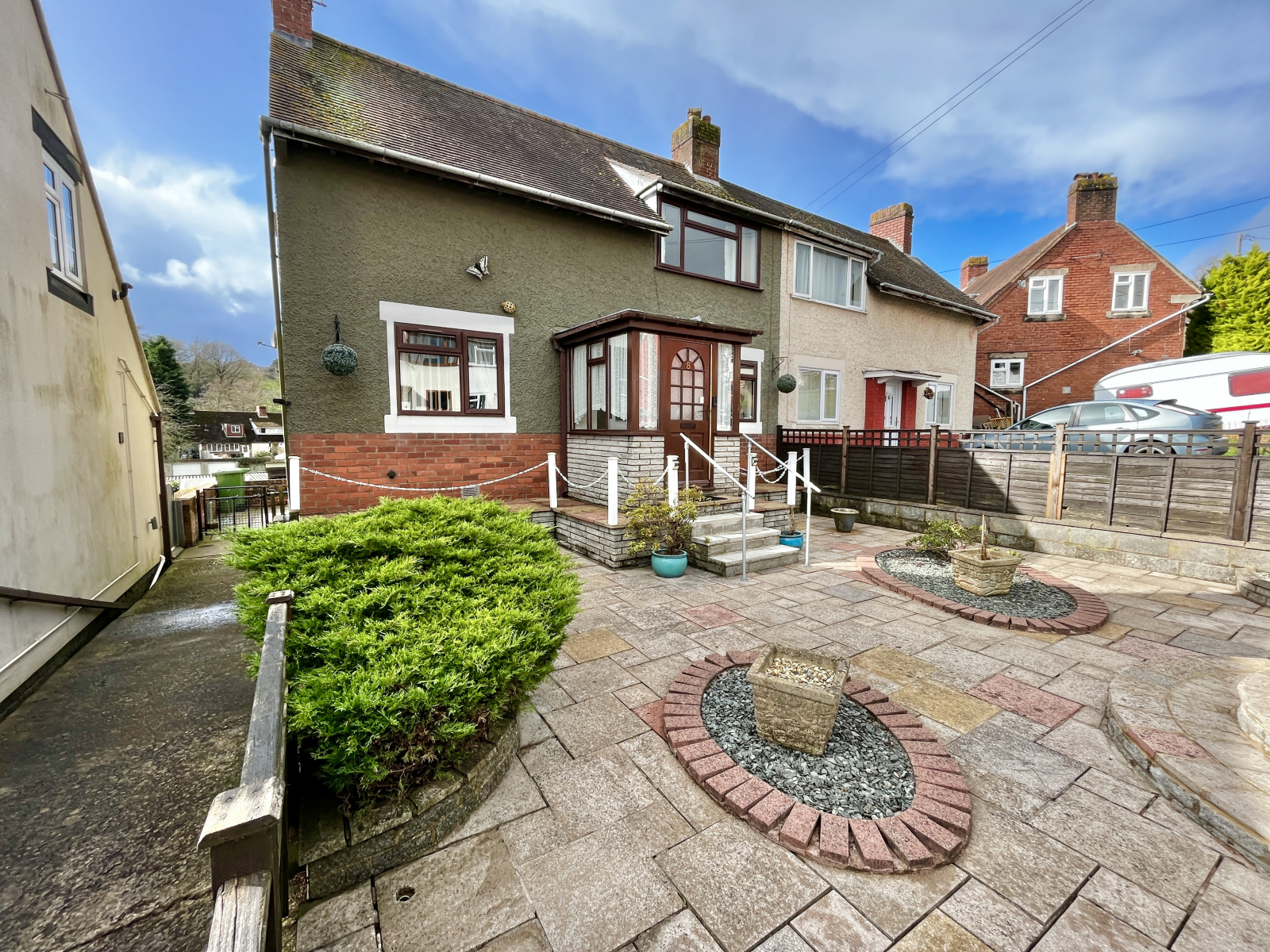 - Driveway for 4–5 vehicles with EV charger