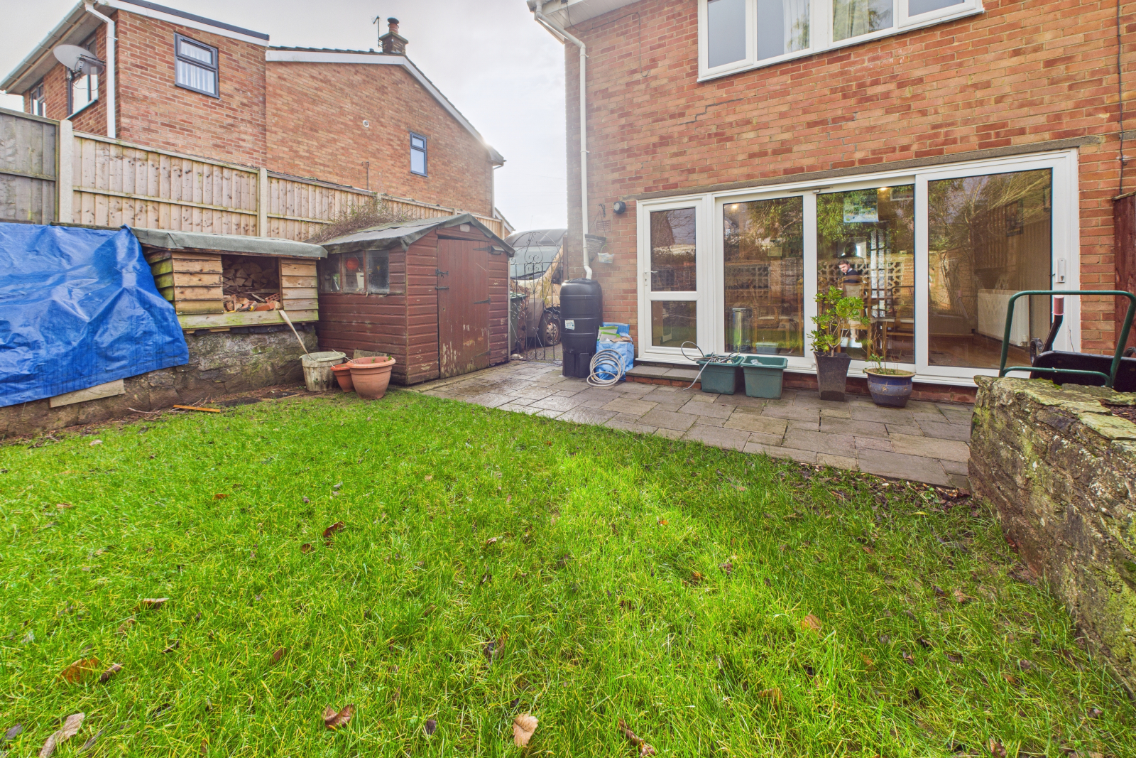 - Low-maintenance rear garden with patio