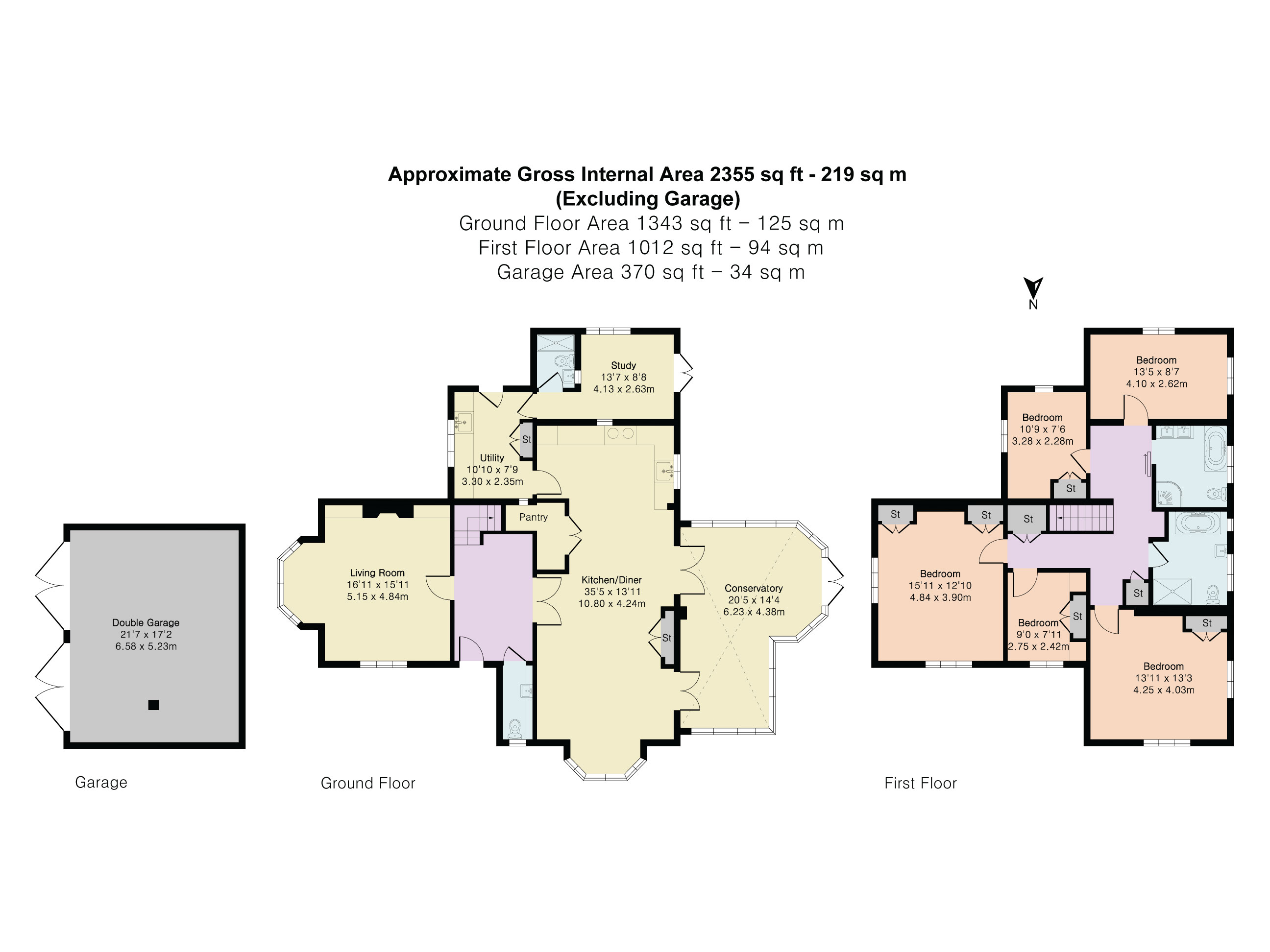A detached double garage provides secure parking and storage, positioned conveniently within the plot.