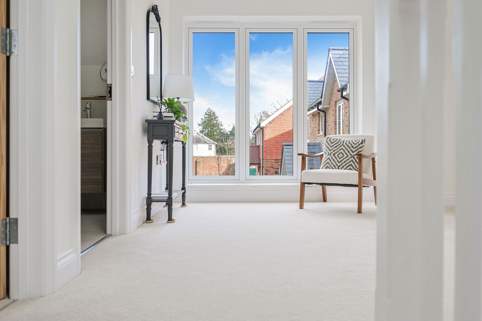 Approached from Byers Lane by a private gated driveway leading to Hookstile Farmstead, Hayfield House is situated at the further end of this unique gated development of just 3 connected luxury country houses by Fernfield Homes.  The development occupies an enviable location amidst beautiful Greenbelt countryside over which the house enjoys outstanding southerly and westerly views towards Ashdown Forest and the surrounding fields and woodland.