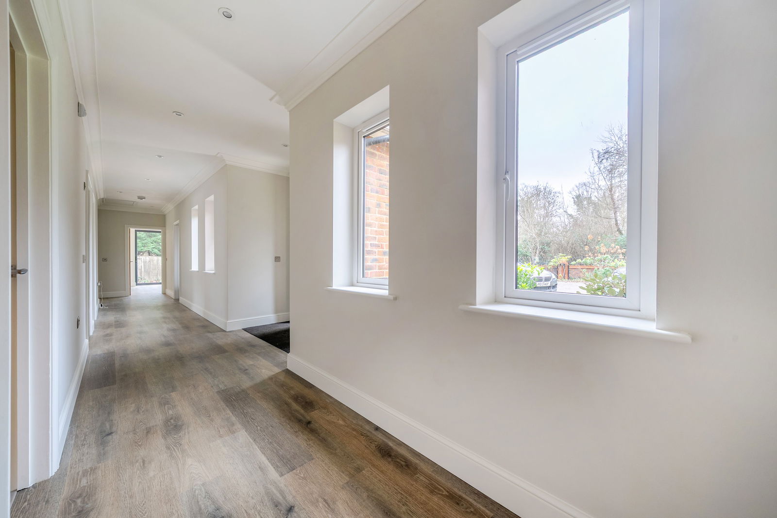 There are four well-proportioned bedrooms, each finished with plush carpeting and offering versatility for guest accommodation, home offices or hobbies. The bathrooms are a particular highlight, fitted with elegant Villeroy & Boch sanitary ware, contemporary vanities and Porcelanosa tiles, creating a refined, hotel-style feel. Practical touches such as wet underfloor heating through the whole home, a new boiler, wood-effect Amtico flooring to the living spaces and bathrooms, and high quality double-glazed windows and external doors ensure the property is both comfortable and energy efficient. The extra attention to detail continues with Cat 6 cabling throughout and TV points in every room.
