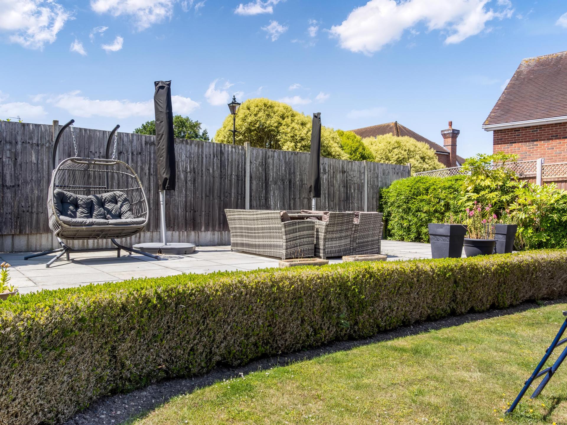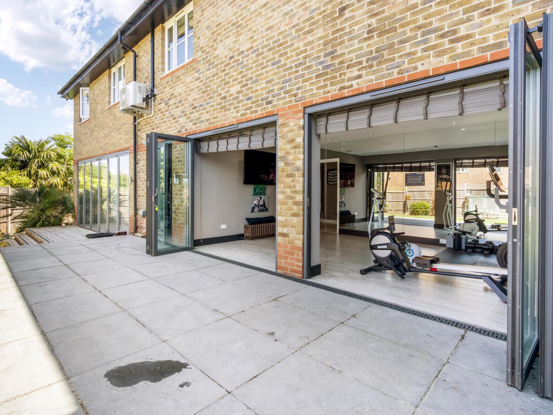 The rear garden is ideal for outdoor living, featuring two inviting seating areas and a sizable lawn, along with a fantastic, detached studio. At the front, a private driveway provides ample off-street parking and leads to a double garage. Perfectly positioned just two miles from Cuffley Station—with direct rail links to London Moorgate and Finsbury Park—and only 0.7 miles from the amenities of Goffs Oak Village. Excellent road links include the A10 (approx. 3 miles) and the M25 (J25, approx. 4 miles).