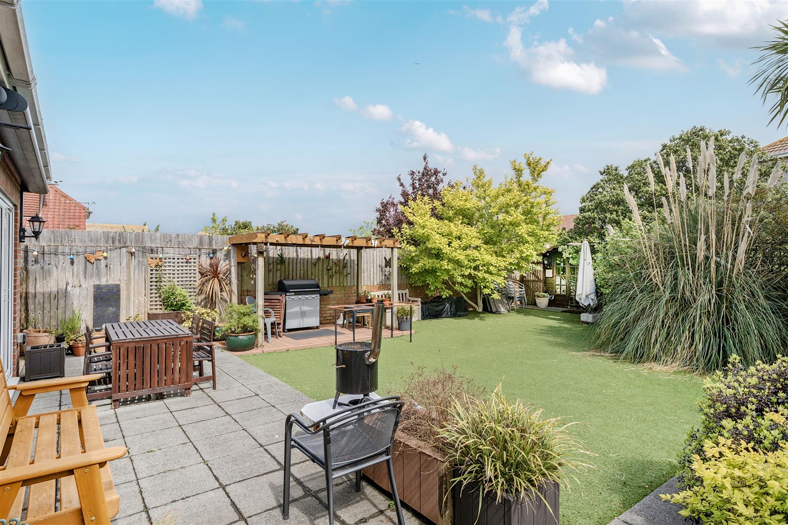 The heart of the bungalow is the expansive kitchen/diner, which is perfect for family gatherings and social occasions. The kitchen is well-appointed and features bi-fold doors that seamlessly connect the indoor space to the private rear garden, allowing for an abundance of natural light. A utility room adds further convenience to your daily tasks.