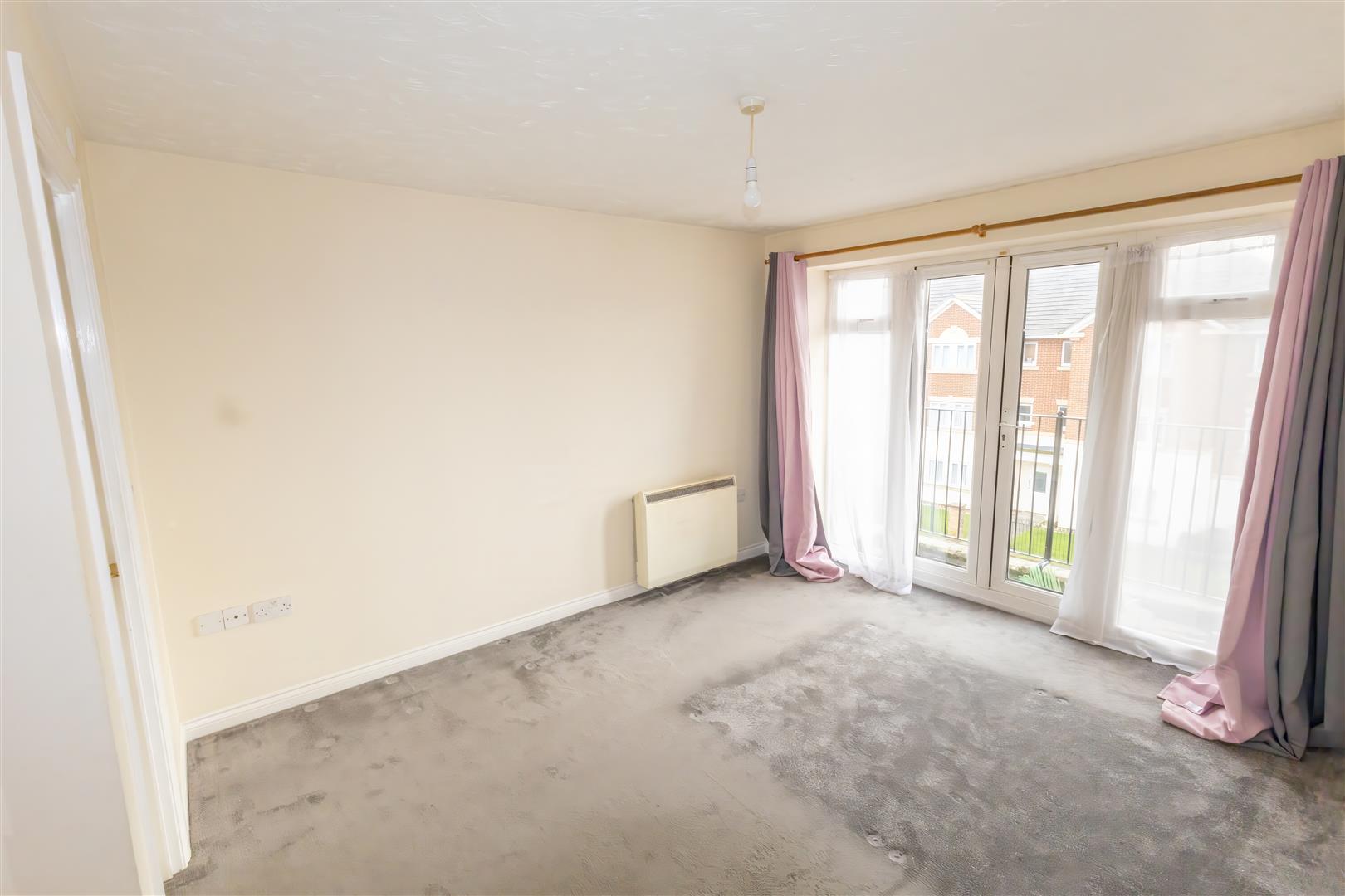 Bedroom 1 - 3.889 x 3.184 (12'9" x 10'5") - Textured ceiling, French style doors leading to balcony, built in wardrobes, storage heater.