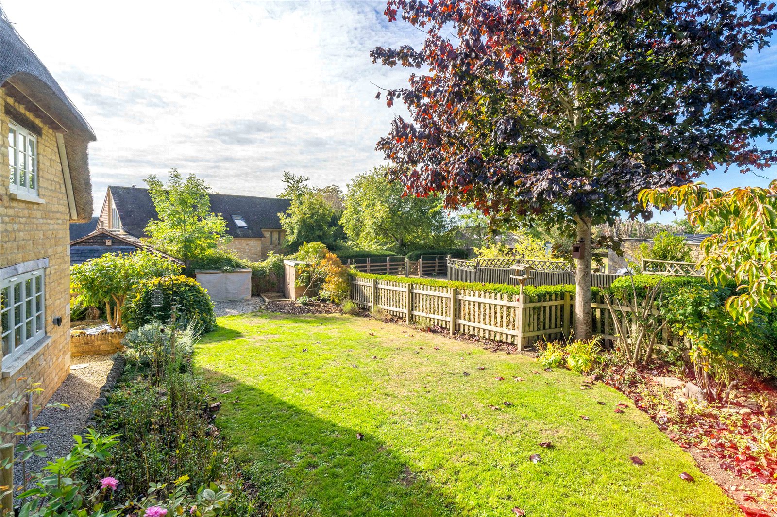 A charming Grade II listed thatched cottage, set in mature gardens in a sought-after hamlet, with garden studio and parking