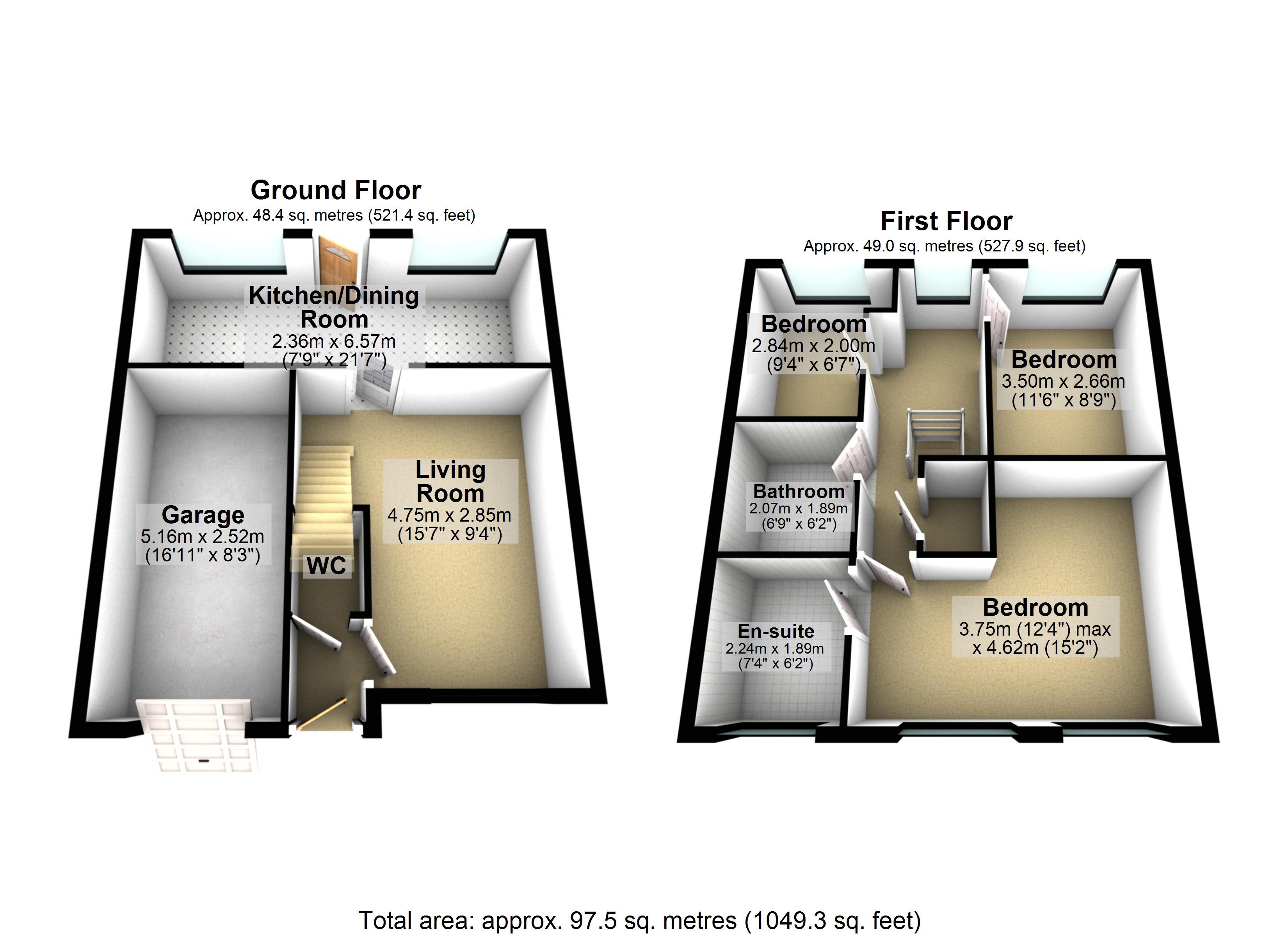Internally the accommodation covers approximately just under 1050sqft of living space and boasts QUALITY FIXTURES AND FITTINGS installed throughout, comprising of entrance hallway, lounge, MODERN FITTED KITCHEN/DINER, w.c, THREE BEDROOMS, en suite and family bathroom suite.
