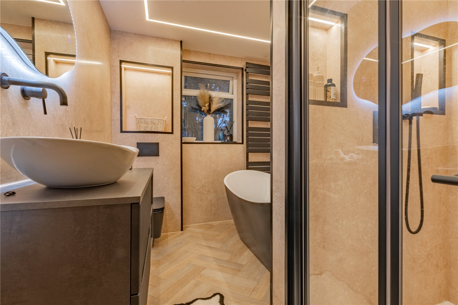 Externally the property stands on a GENEROUS PLOT providing AMPLE OFF ROAD PARKING with driveway for numerous vehicles. The property is also equipped with an E.V CHARGING POINT.