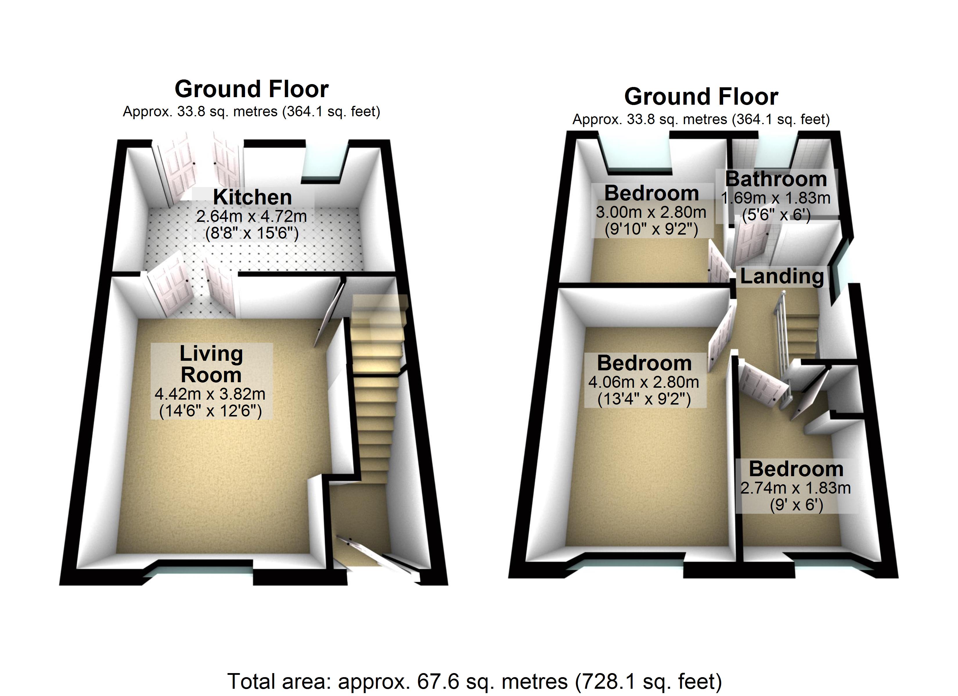 Internally the accommodation covers approximately just under 730sqft of living space, comprising of living room, MODERN FITTED KITCHEN/DINER, THREE BEDROOMS and family bathroom suite.
