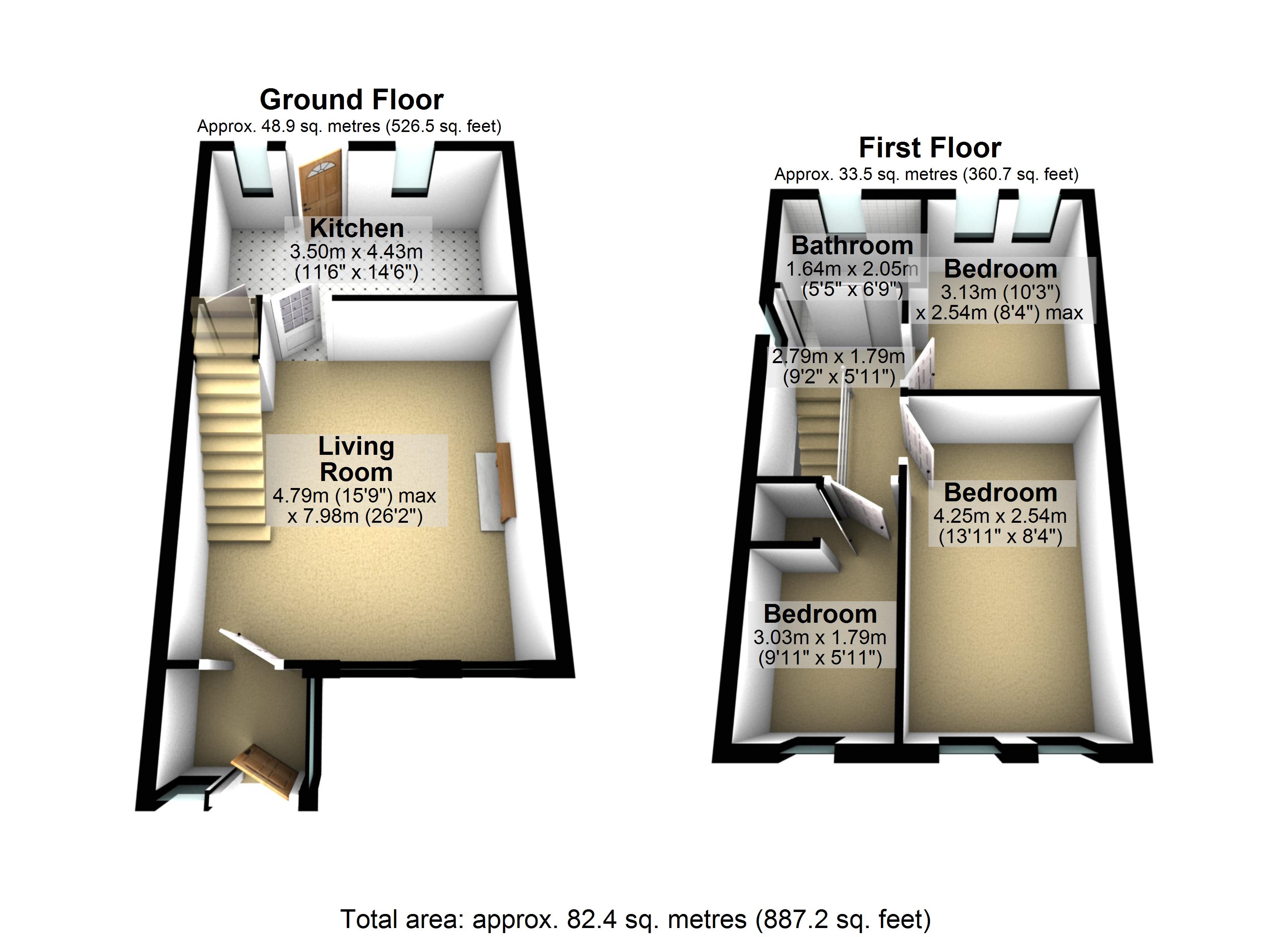 Internally the accommodation covers approximately just over 885sqft of living space, comprising of entrance porch, living room, kitchen, THREE BEDROOMS and family WET ROOM suite.