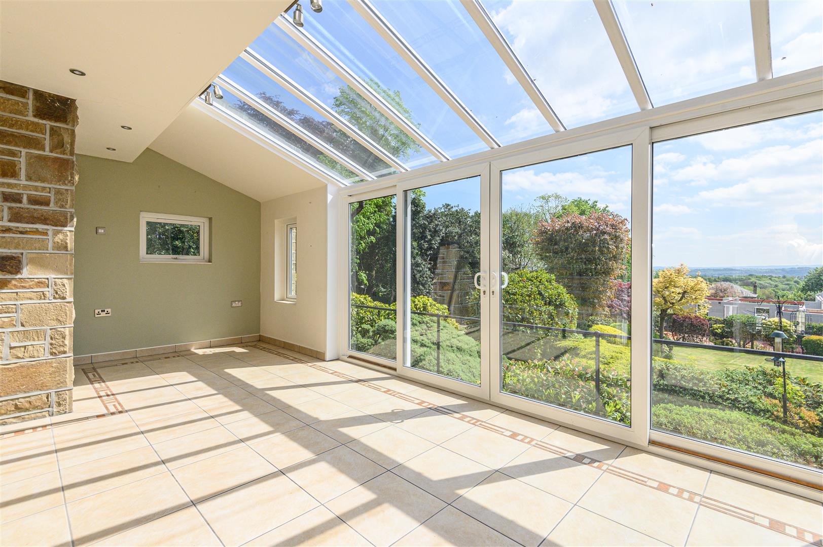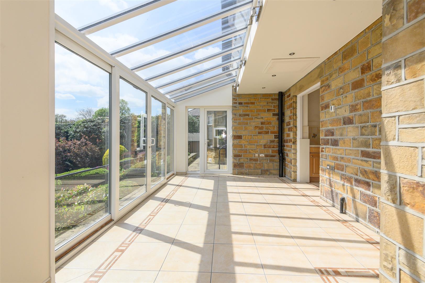 • Light-filled conservatory with exposed stonework and garden access