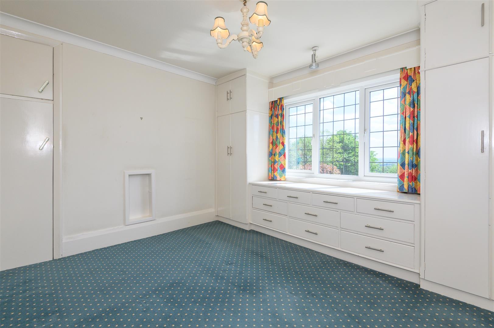 - The principal bedroom includes fitted storage and dressing table, with garden views and an ensuite shower room