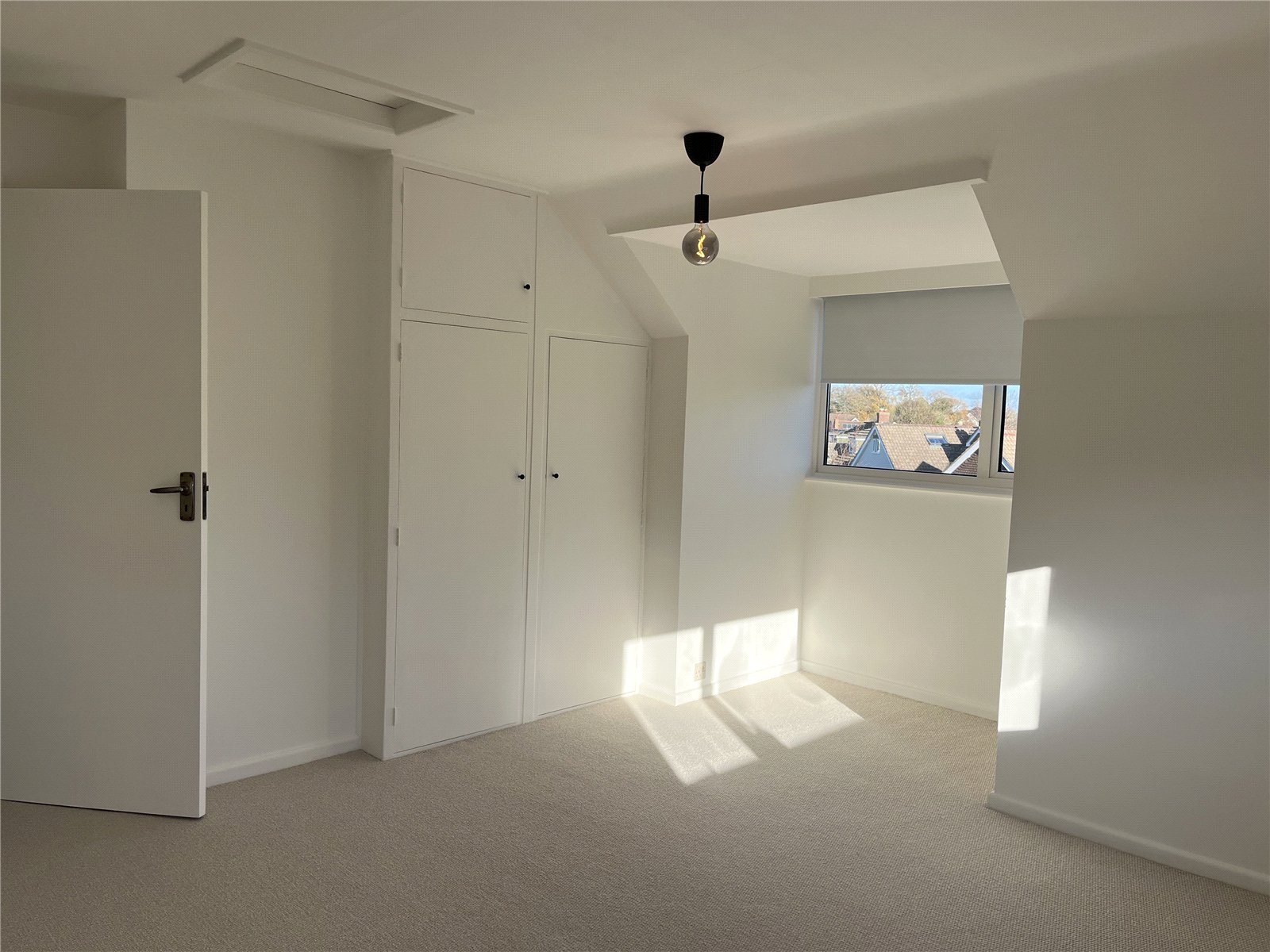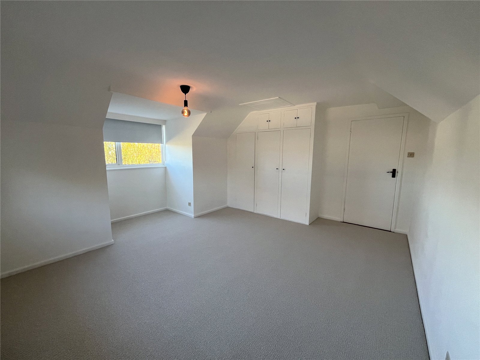 A range of wardrobe cupboards, access to eaves and double radiator.