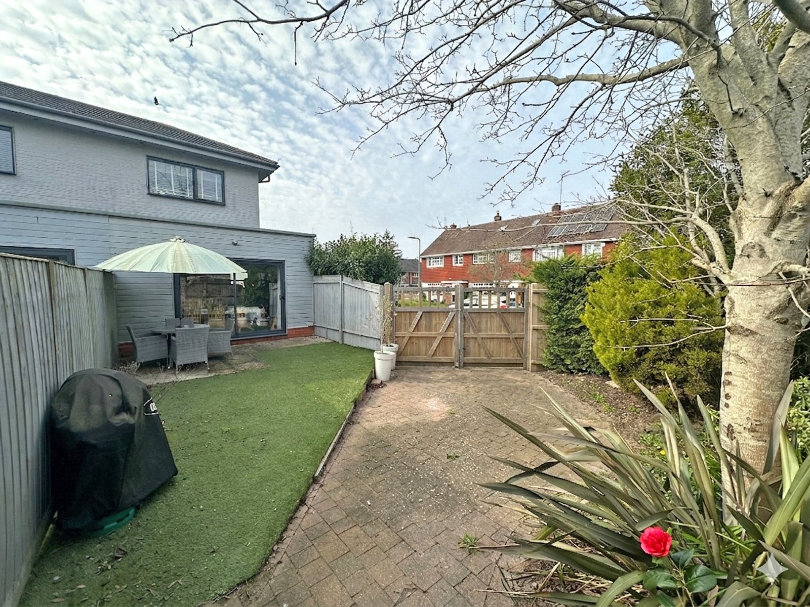 • Secure Parking: To the rear, large double timber gates provide privacy and allow for further secure off-street parking or easy access for larger items.