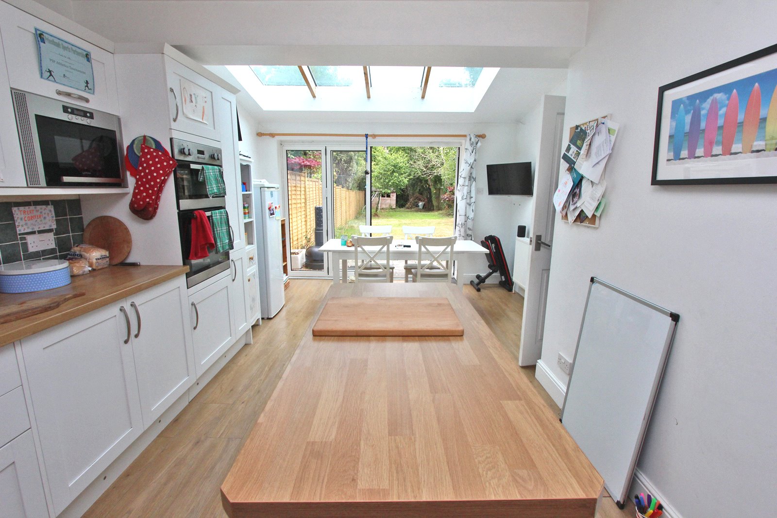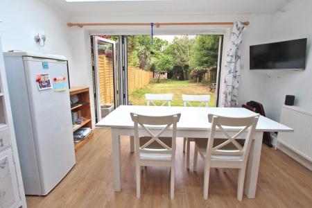 The lovely kitchen/dining room is also approached via the entrance hall and benefits from a part vaulted double glazed roof bifold doors opening to the rear garden.