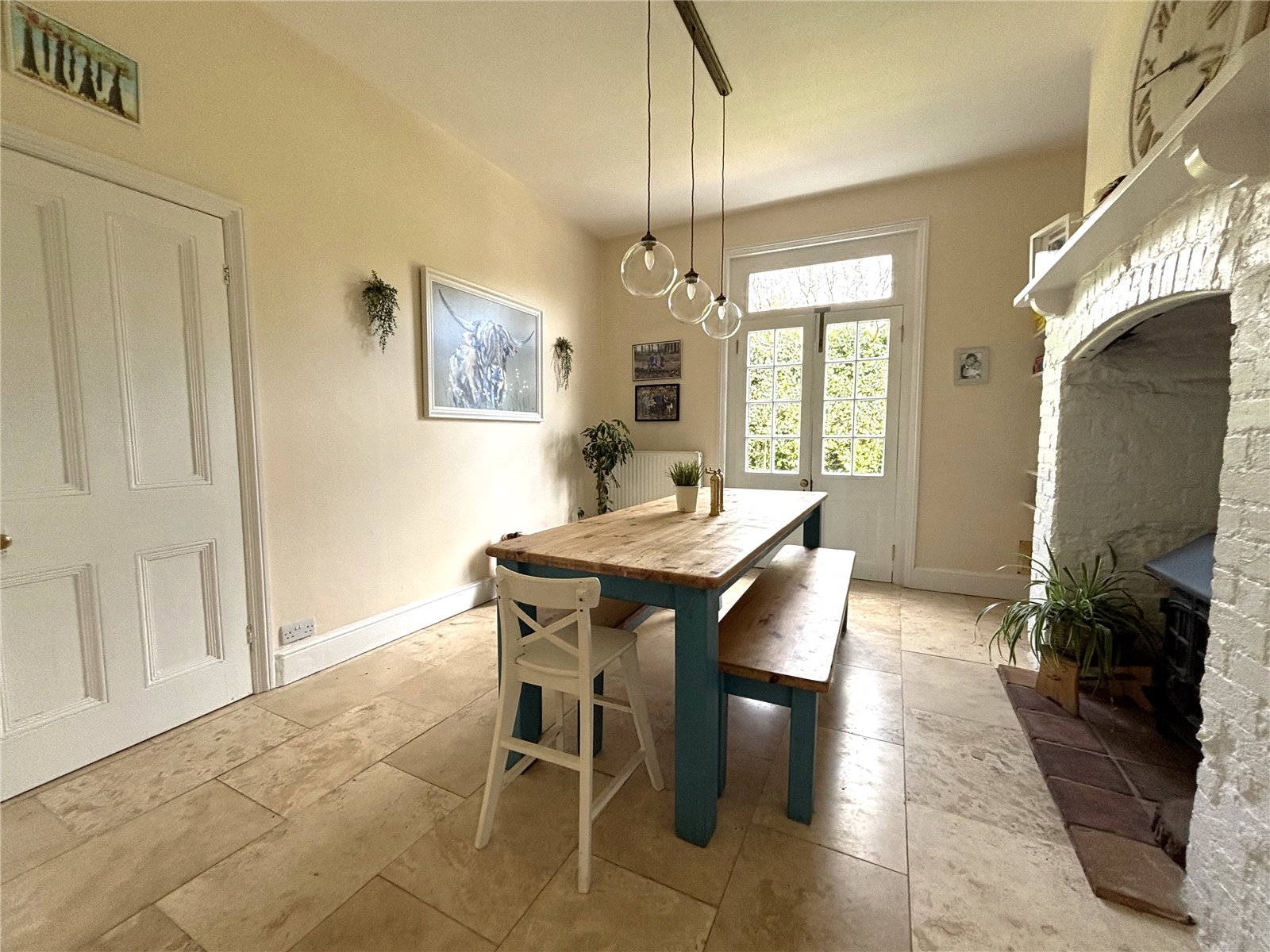 Breakfast Room 3.96m (13 ft 0in) x 3.66m (12ft 6in). Brick fireplace housing wood burning stove. Shelved recess and cupboards to sides. Doors to patio. Tiled floor.