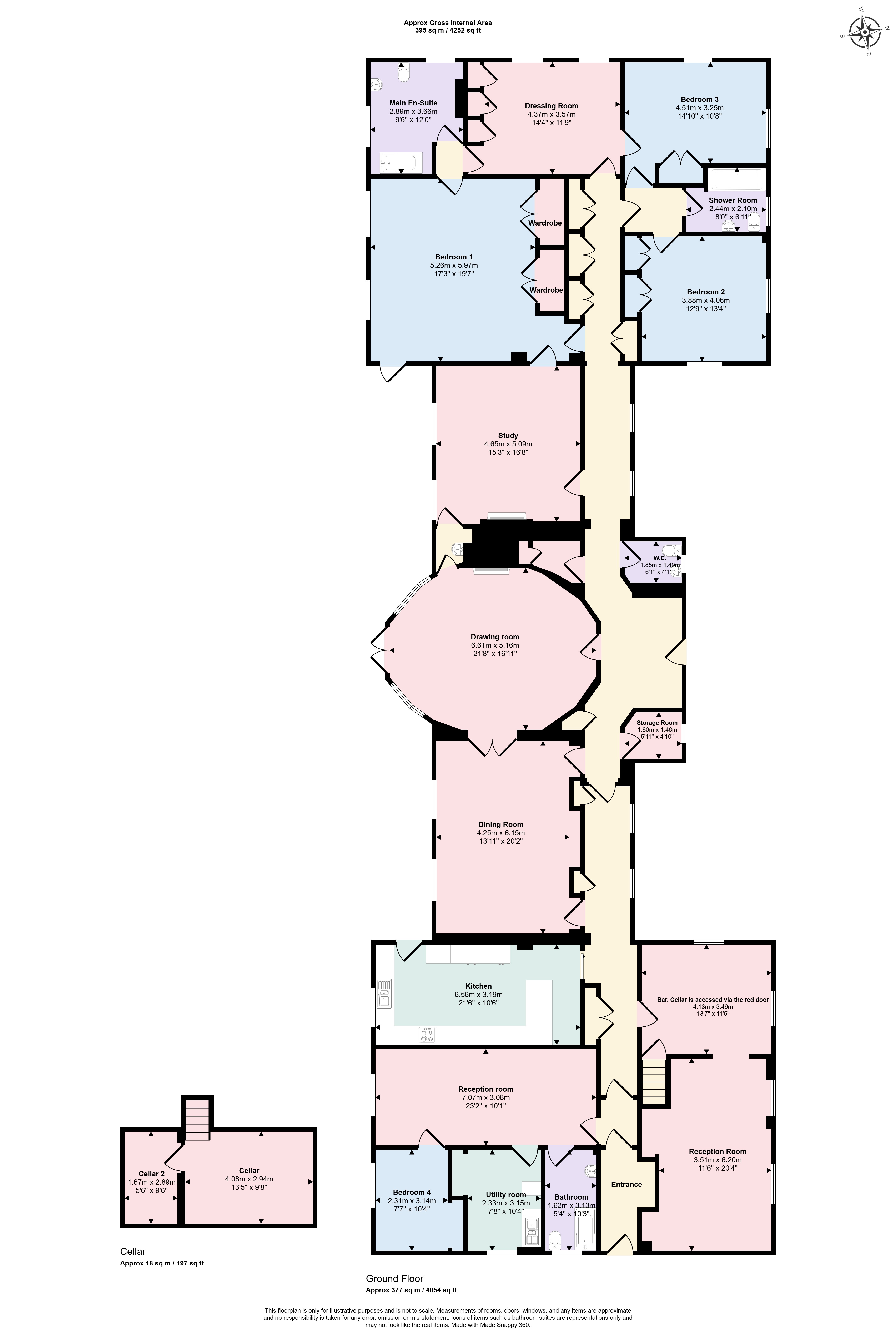 Cellars Separated into two sections, one for wine storage and the other contains the large oil boiler.