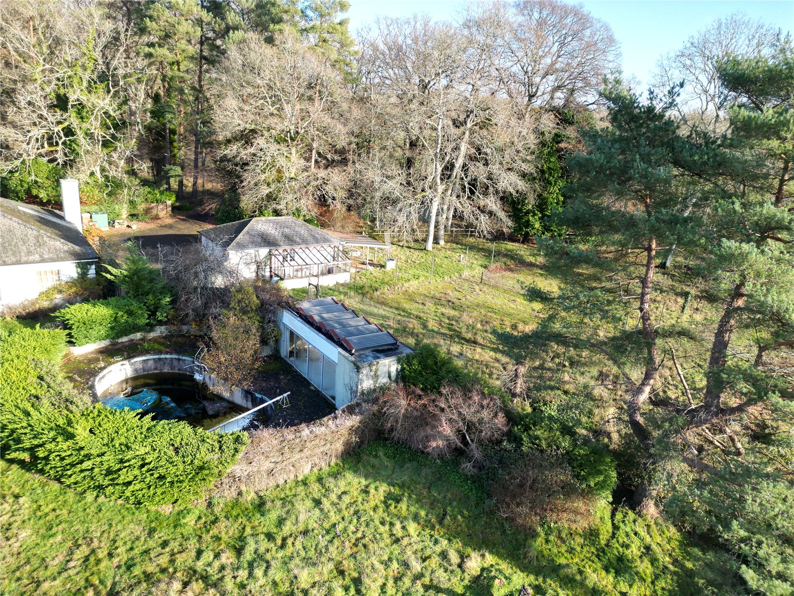 The impressive grounds comprise a mixture of lightly populated copse of predominantly oak woodland to the north of the house and lawn with large raised pond and water meadow to the south. Immediately adjacent to the rear of the house is a large flag stone terrace with steps down to the lawn. The water meadow leads to the River Allen, for which the house enjoys fishing rights. There is a former swimming pool with pool house/changing room and entertaining space and a former hard-surface tennis court to the east of the house, all of which are in need comprehensive maintenance/replacement. There is also a tractor shed, large chicken coop, greenhouses, and water well.