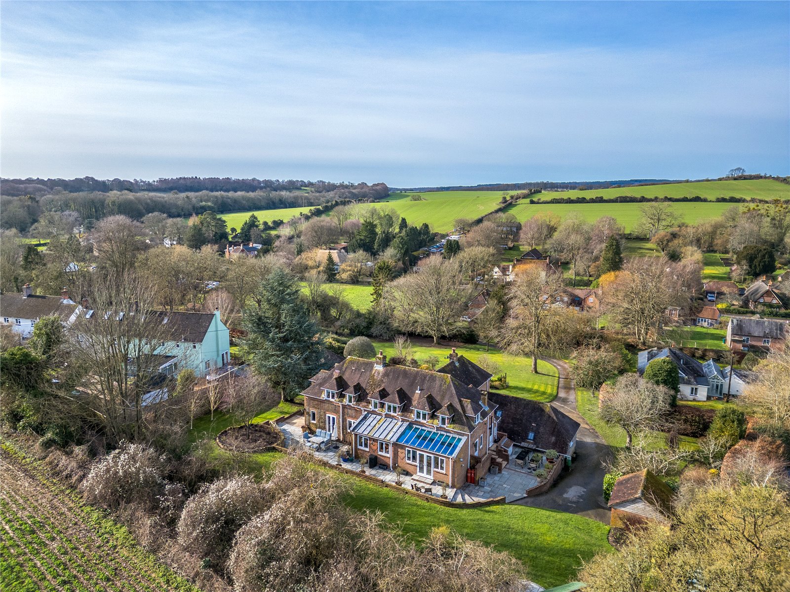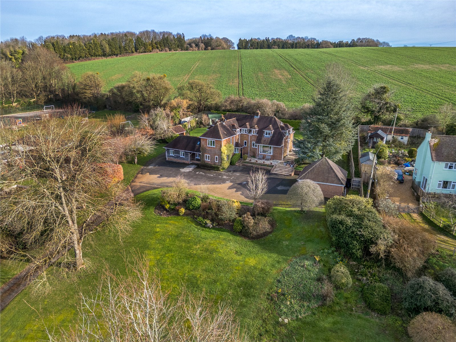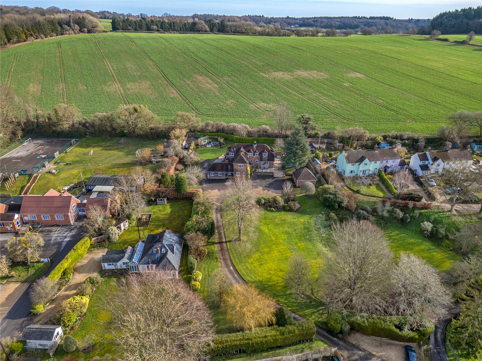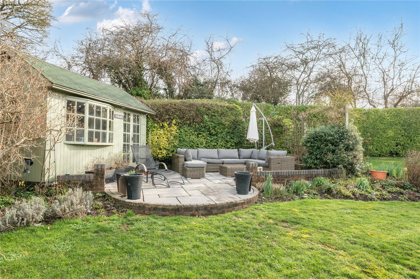 The lower section of garden is shaped by the contours of Mintys Hill and a historic chalk pit, from which the name of the house is derived. The garden is laid principally to lawn with several deep, mature shrub and flower beds, with the lawn wrapping around the house on the side and rear elevations. From the driveway a set of steps lead to a patio/seating area designed to catch the afternoon and evening sun. Accessible from various points within the house, the patio continues to the side and rear of the house with a feature raised rose garden and retaining brick wall and offers generous outdoor entertaining/dining/relaxing space. In the upper north-west corner of the garden is a greenhouse, a number of raised vegetable beds and the large oil tank. This productive area is screened from the house by a summerhouse with electricity connected; to the front of which stands a further patio/seating area.