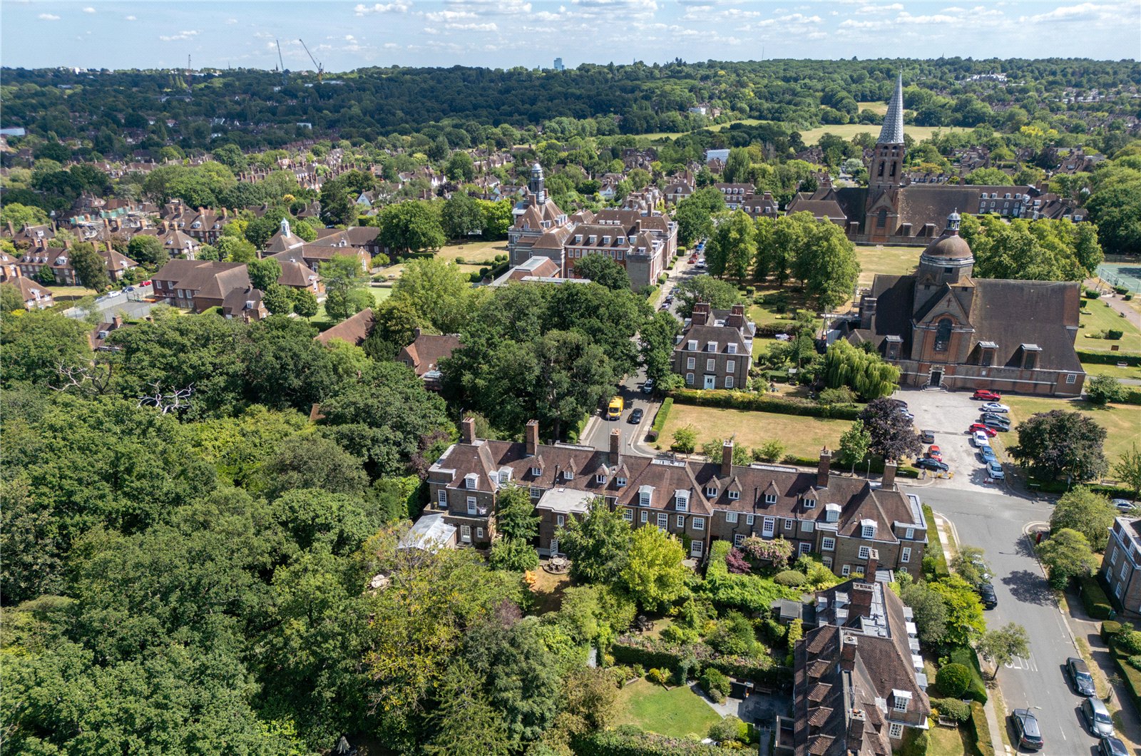 The house is located in Central Square which features architecturally historic buildings; Free Church and St Jude -on-the-Hill, directly in front of the house. The house benefits from the amenities of the square including use of a tennis court and access to several parks. The house and many of the surrounding houses including the Free Church and St Jude -on-the-Hill were originally designed by renowned British architect Sir Edward Lutyens who was widely considered the greatest British architect of his time.