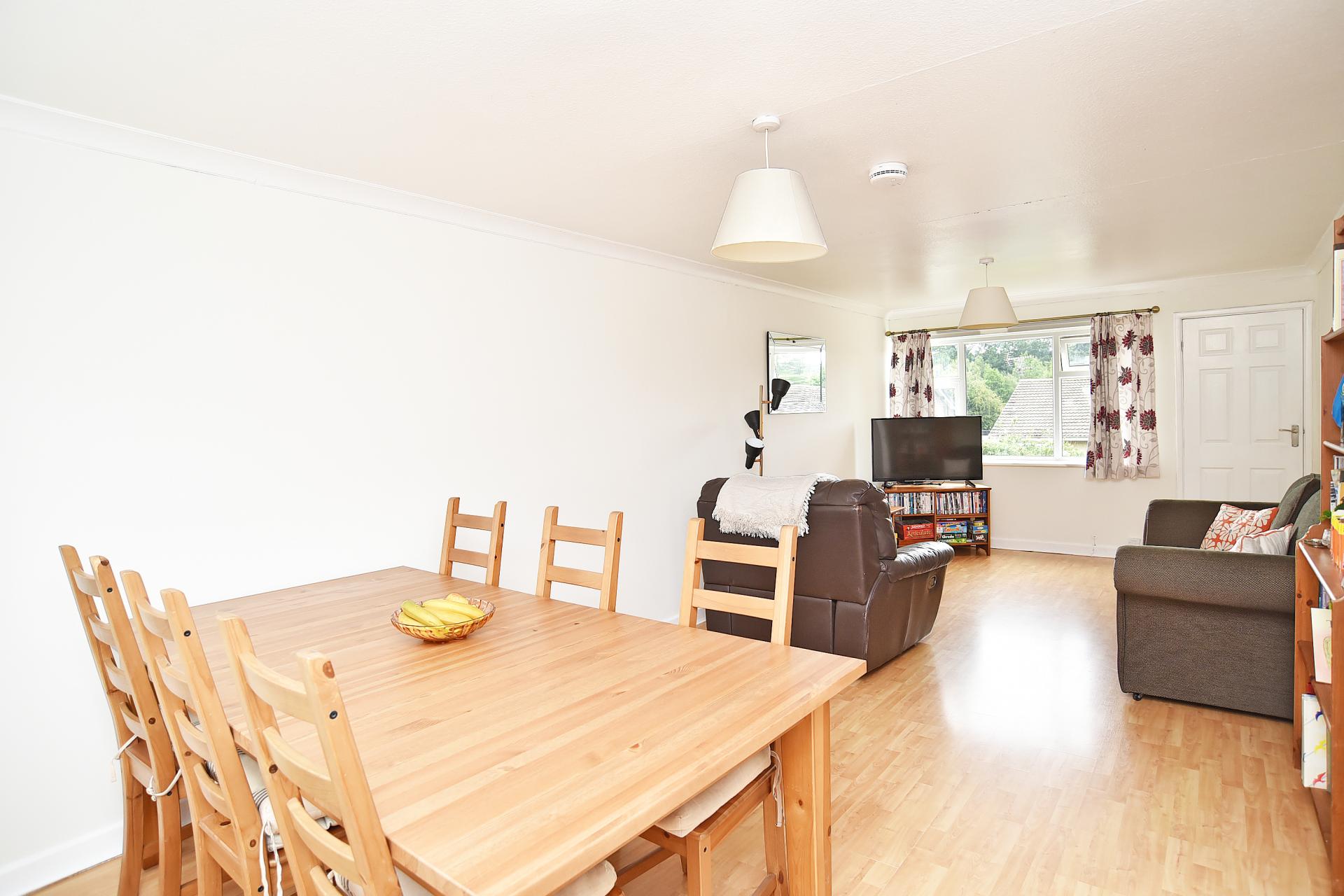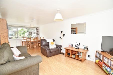 A spacious dual-aspect reception room with UPVC double-glazed windows to the front and rear elevations. Laminate flooring, radiator and TV point.