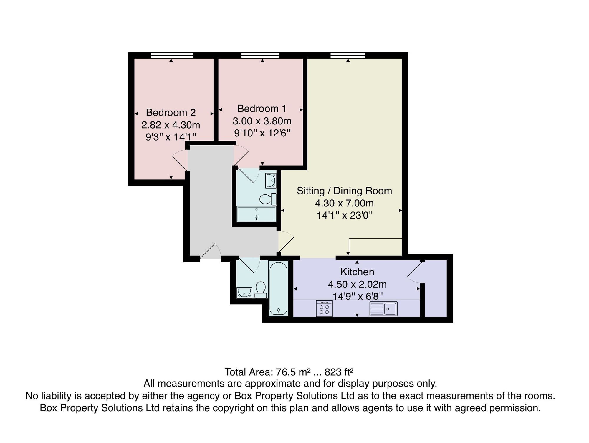ENTRANCE HALL Spacious entrance with storage cupboard and access to all rooms. LIVING / DINING / KITCHEN A generous open-plan space offering sitting, dining and kitchen areas. The kitchen is fitted with a range of modern units and integrated Neff appliances, including hob, oven, fridge / freezer and dishwasher. Large windows create a bright and airy atmosphere, ideal for both everyday living and entertaining. BEDROOM 1 A well-proportioned double bedroom with access to - EN-SUITE SHOWER ROOM Stylish modern suite comprising WC, washbasin, and walk-in shower. BEDROOM 2 A further double bedroom, ideal as a guest room or study. FAMILY SHOWER ROOM Modern white suite with WC, washbasin and walk-in shower. Finished with contemporary tiling and fittings.