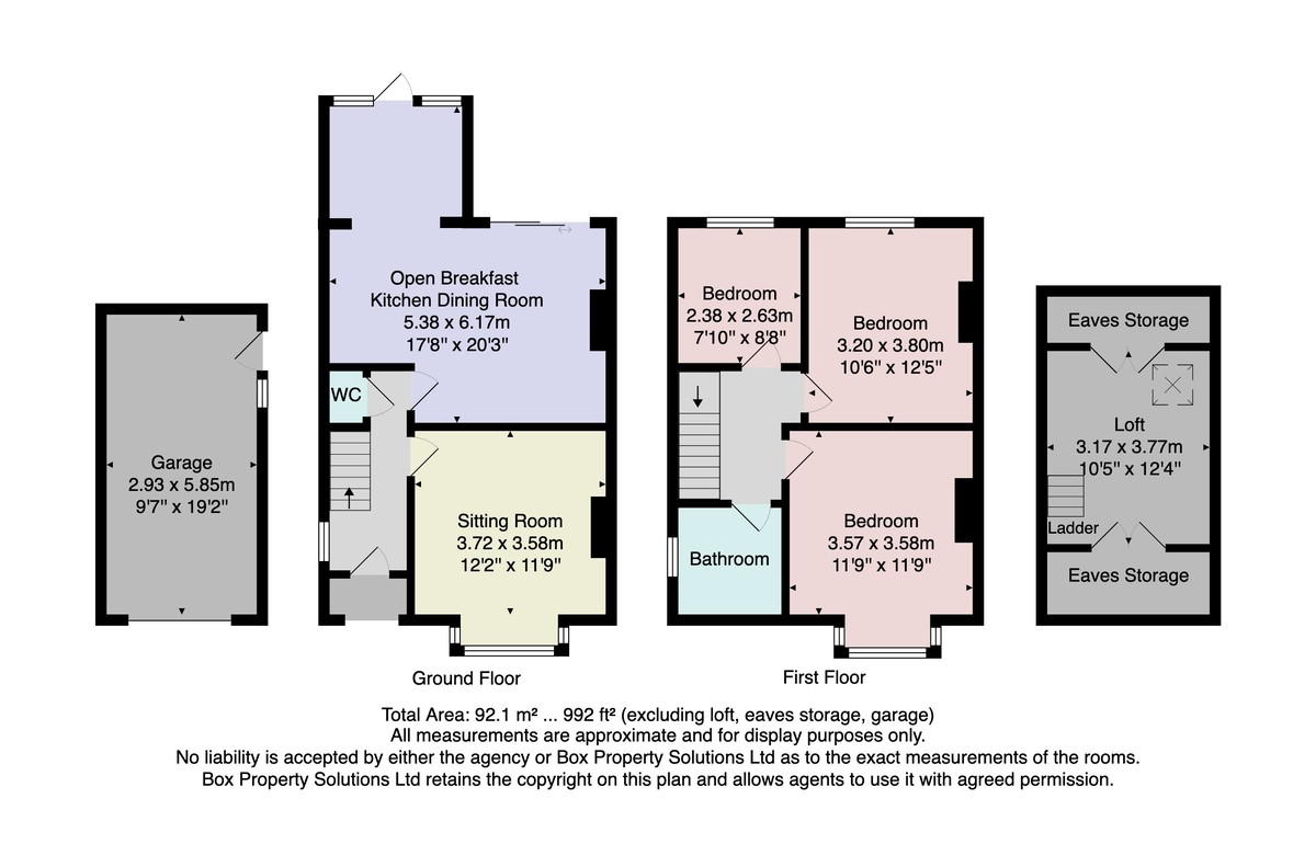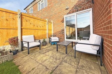 OUTSIDE Block paved driveway to the front providing off street parking and leads to a garage. To the rear a paved seating area and shaped lawned with fencing to perimeters.