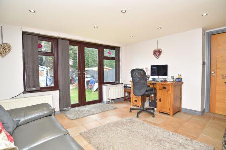 A further reception room providing dining or additional seating space, with glazed doors leading to the garden.