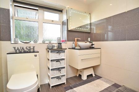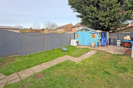 OUTSIDE There is a good-sized and attractive rear garden with lawn, paved sitting area and large garden shed. Further lawned garden to the front with path leading to the front door. On-street parking.