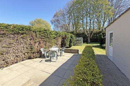 OUTSIDE The property has a particularly large plot including an attractive and good-sized rear garden with lawn, with various paved sitting areas. A drive provides off-street parking for three vehicles and leads to the garage, which has light and power.