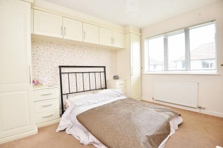 There are four bedrooms on the first floor. The main bedroom has fitted wardrobes. Access to the fourth bedroom is via bedroom 3.