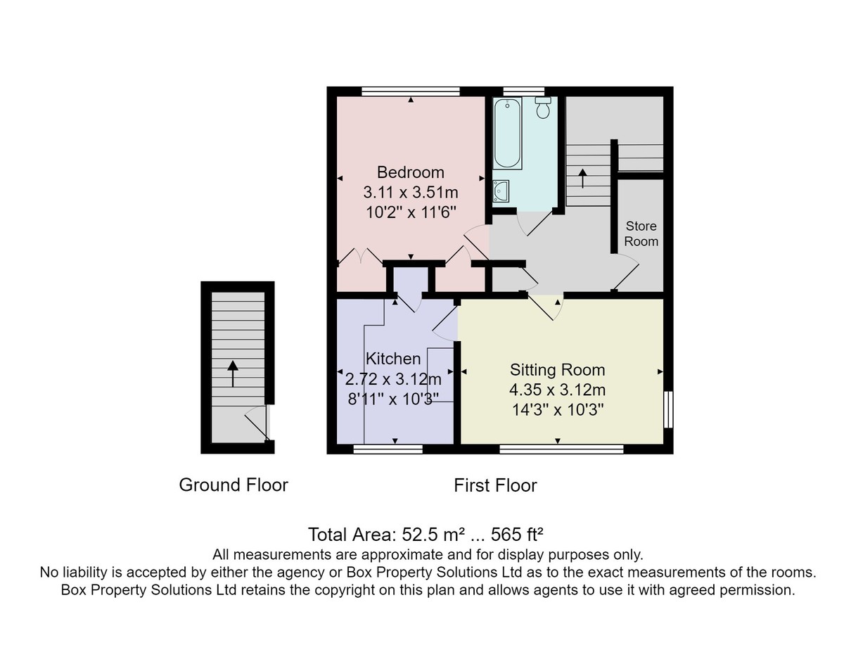 Accessed via its own private entrance door and having a radiator, switch back staircase leasing to the first floor with uPVC double glazed window on the half landing.